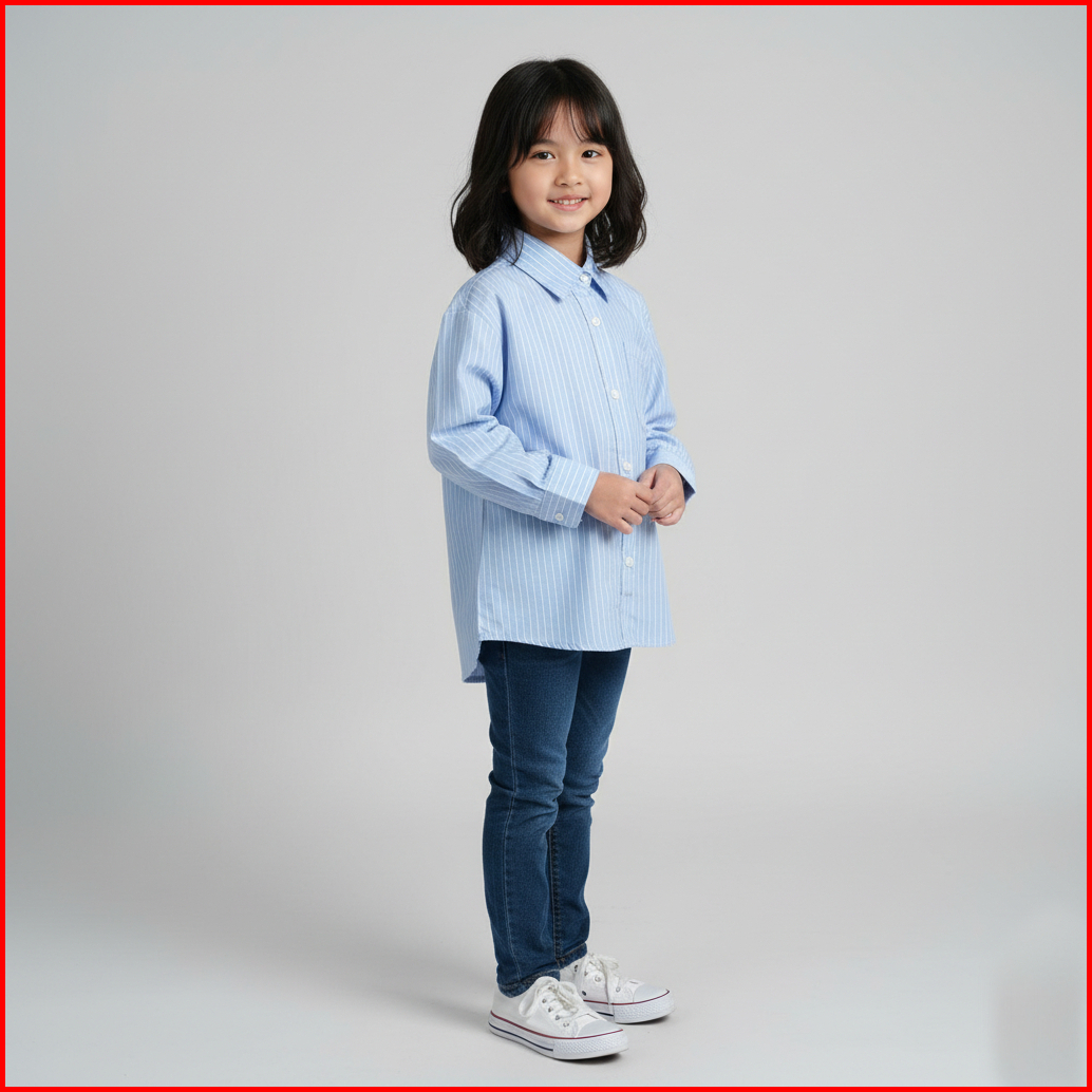 Namina Kemeja Anak Perempuan Katun Salur Usia 1-12th Atasan Anak Oversize Kekinian Lengan Panjang