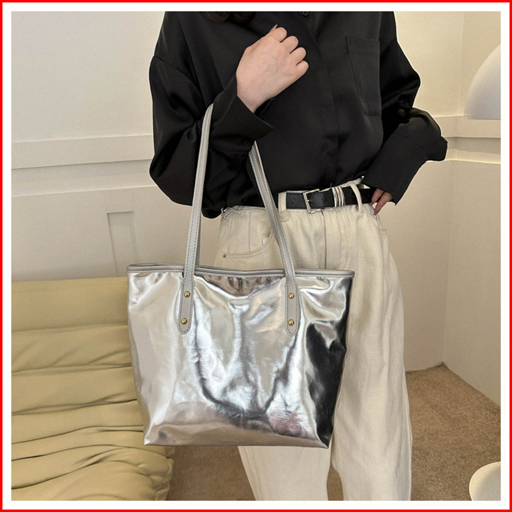 Tas Tote Bag Wanita Modis 2025 Dengan Desain Silver Tahan Air Dan Tali Bahu Nyaman Untuk Gaya Kasual Sehari-hari Dmts070