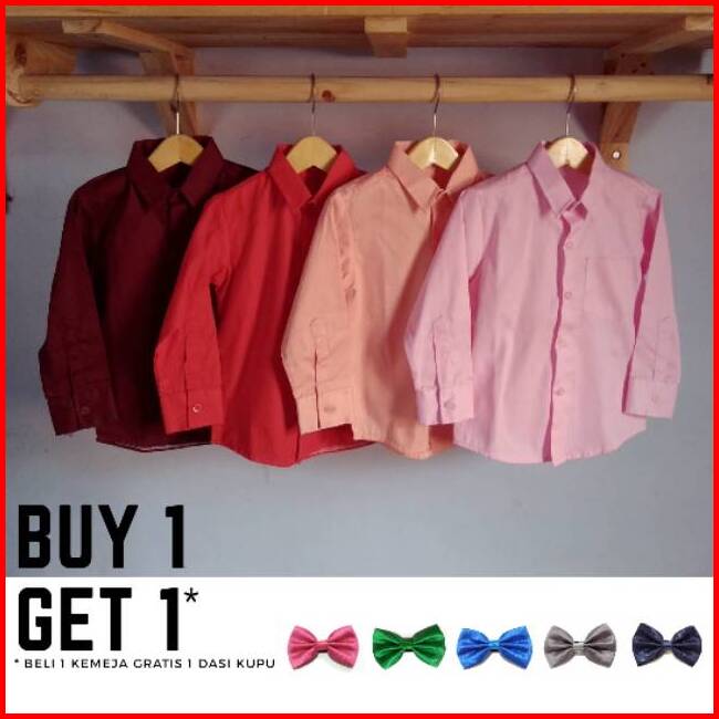 Kemeja Anak Lengan Panjang Maroon Merah Salem Pink