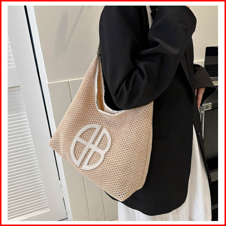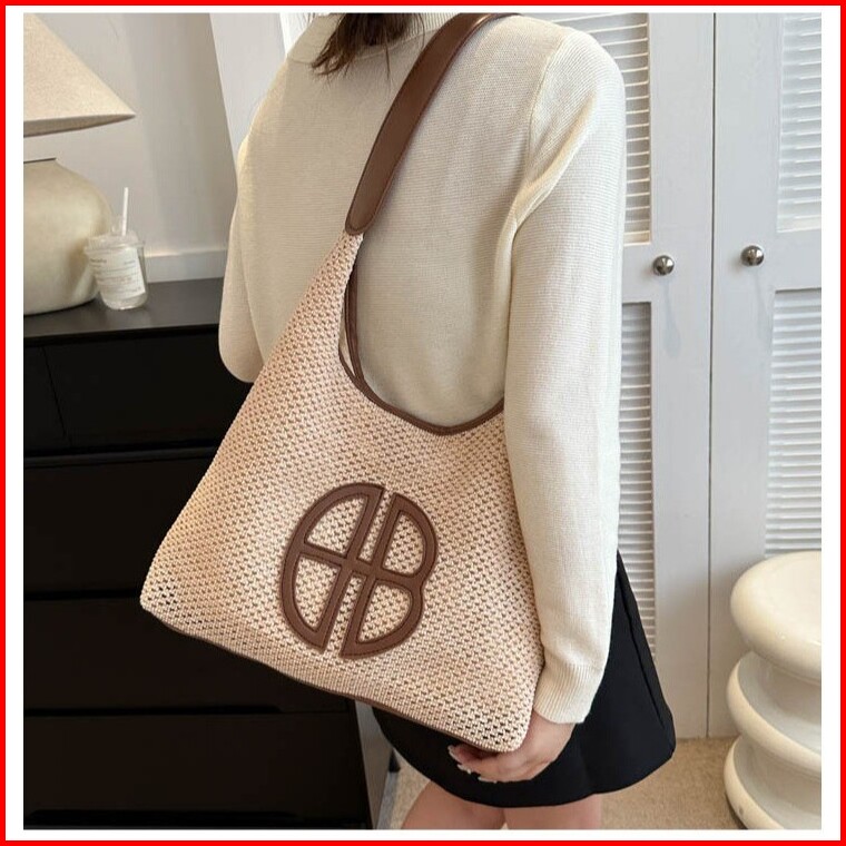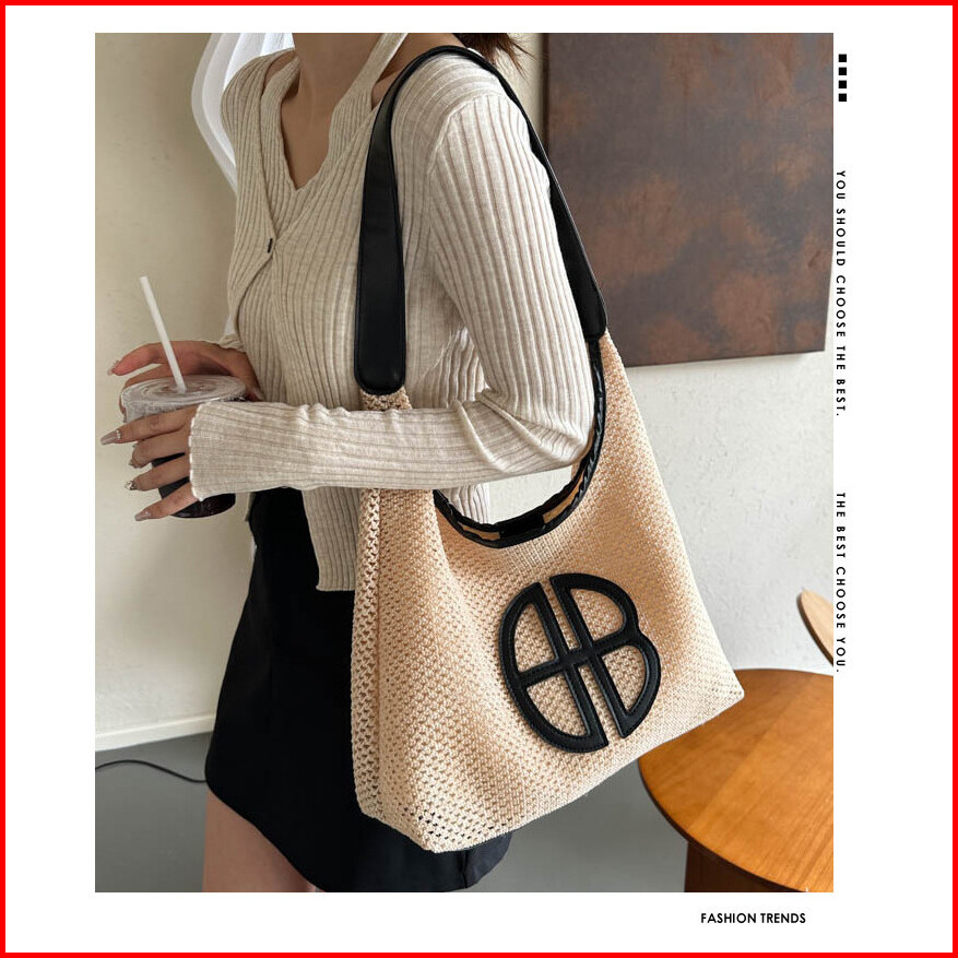 Tas Wanita Trendi 2024 Tas Tote Bag Wanita Bahu Berongga Jerami Kasual Pantai Dmts169