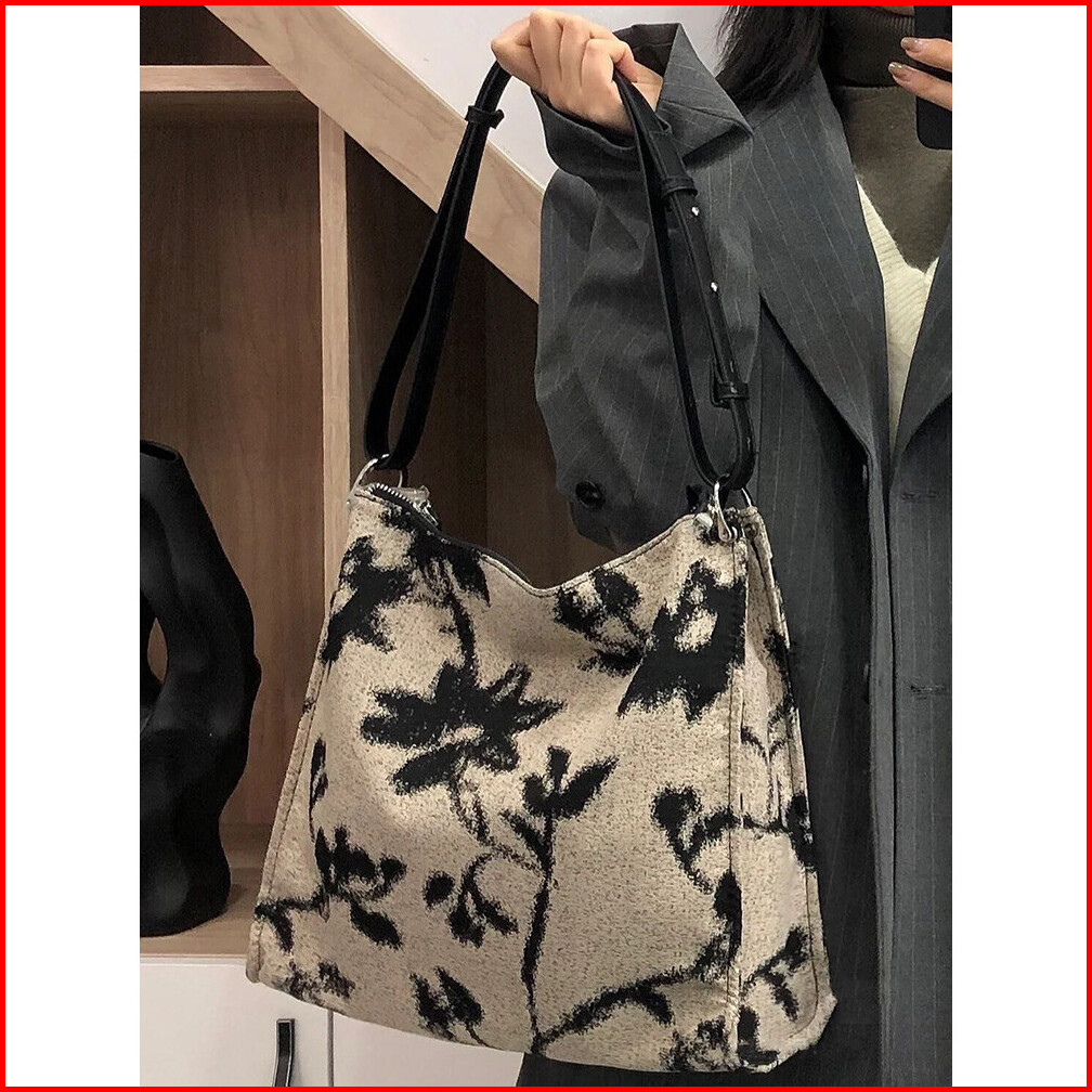 Tas Tote Bag Wanita Stylish Tas Kanvas Hitam Dan Putih Yang Ringan Praktis Untuk Dibawa Ke Kampus Atau Kerja Dmts159