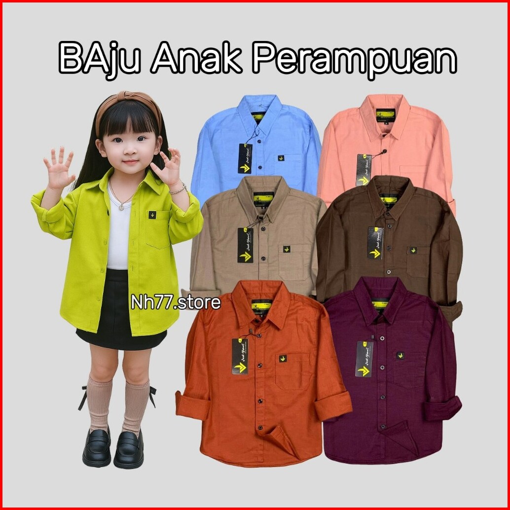 Kemeja Anak Perempuan Kualitas Premium Umur 2-13th Lengan Panjang Warna Terbaru