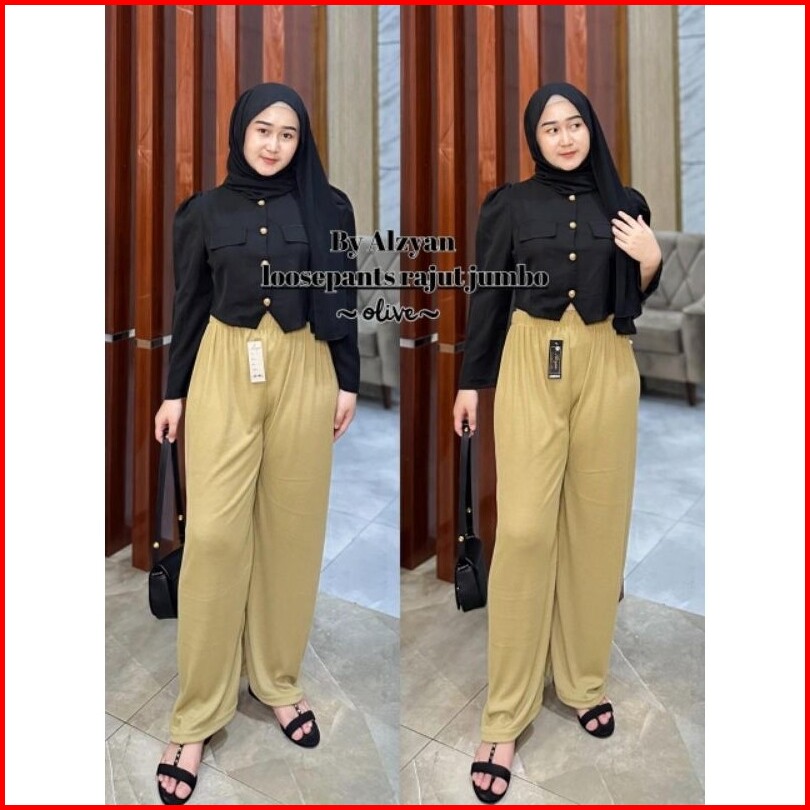 Loose Pants Rajut Kulot Highwaist Jumbo Bb 60-100 Super Jumbo 100-140 Termurah