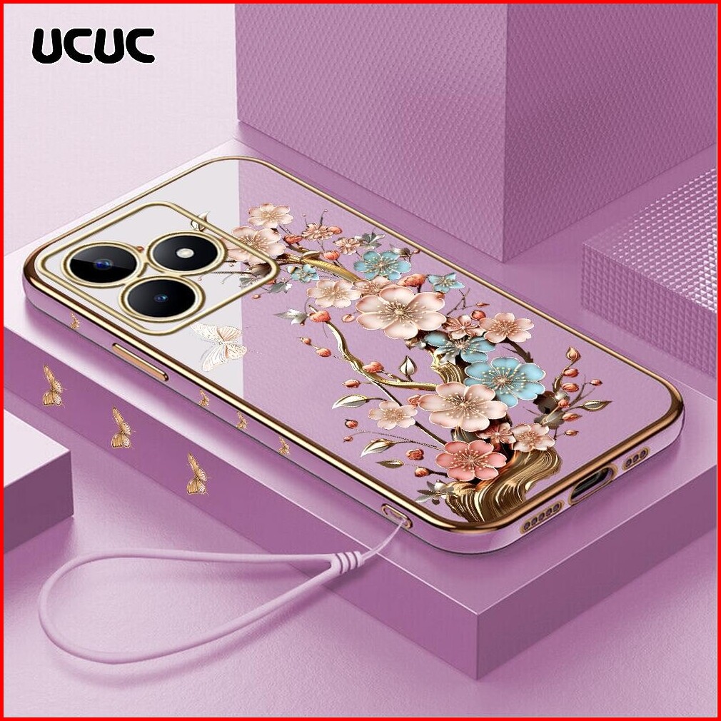 Ucuc Realme C53 C51 C51s Note 50 Narzo N53 Lanyard Gratis Untuk Casing Hp Softcase Kesing Cartoon Square Edge Pattern De