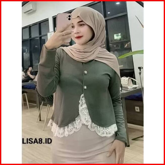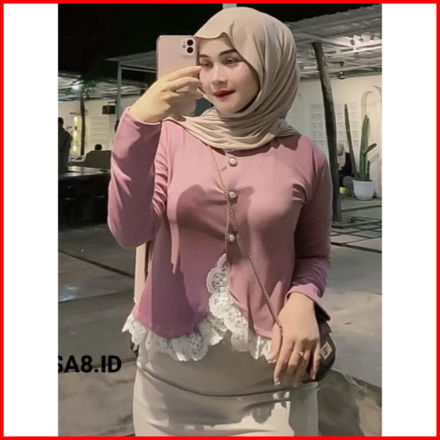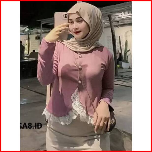 Sabrina Crop Top Renda Blouse Atasan Wanita Bahan Knit Premium Korean Style Kekinian