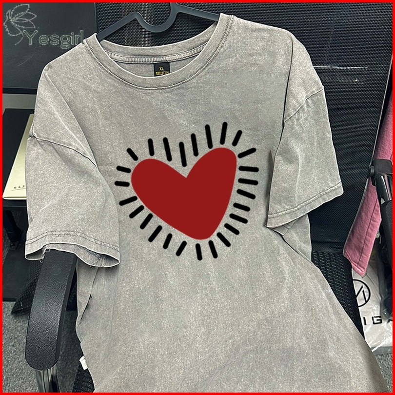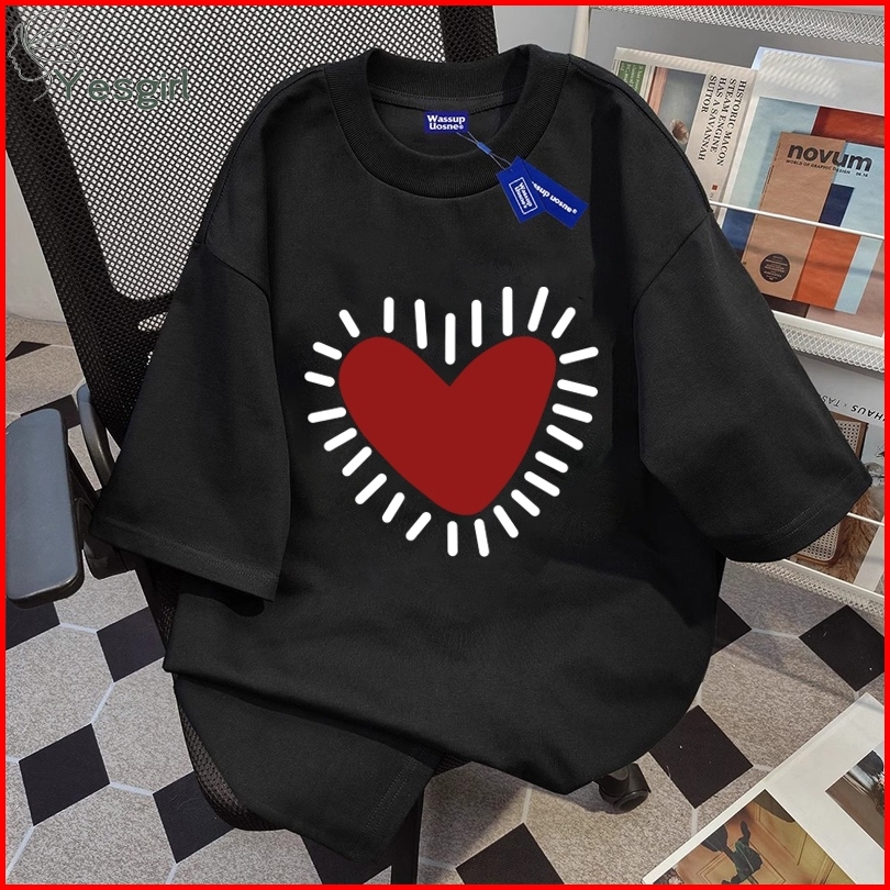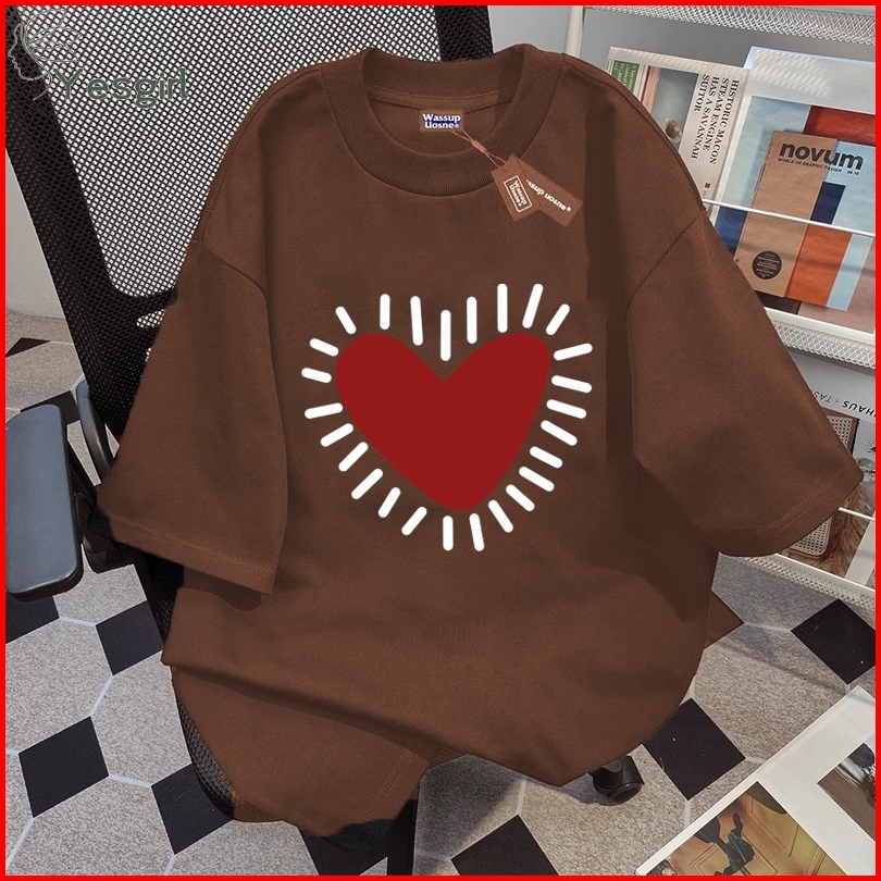 Yesgirl Korea Style Cinta Print Kaos Kasual Longgar Atasan Wanita Kekinian Kaos Oversized Baju Atasan Wanita Terbaru 100