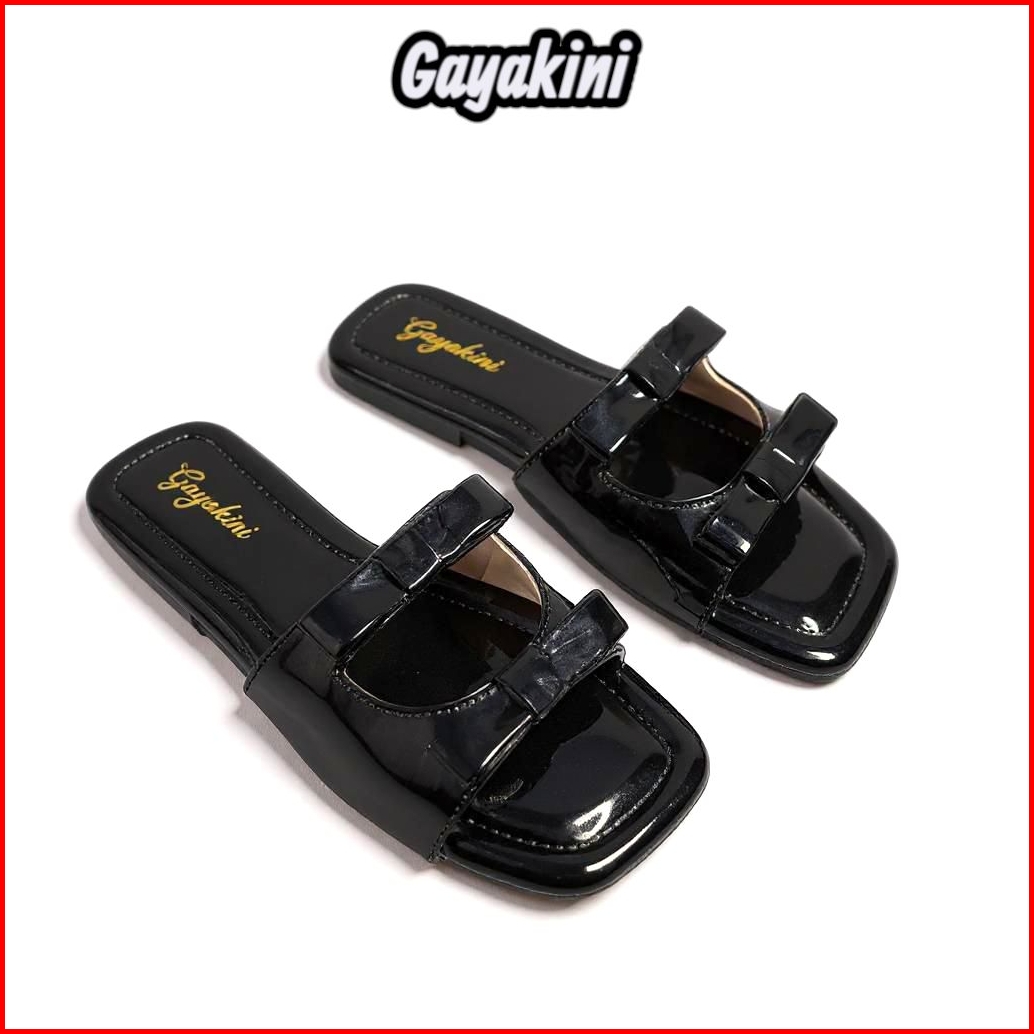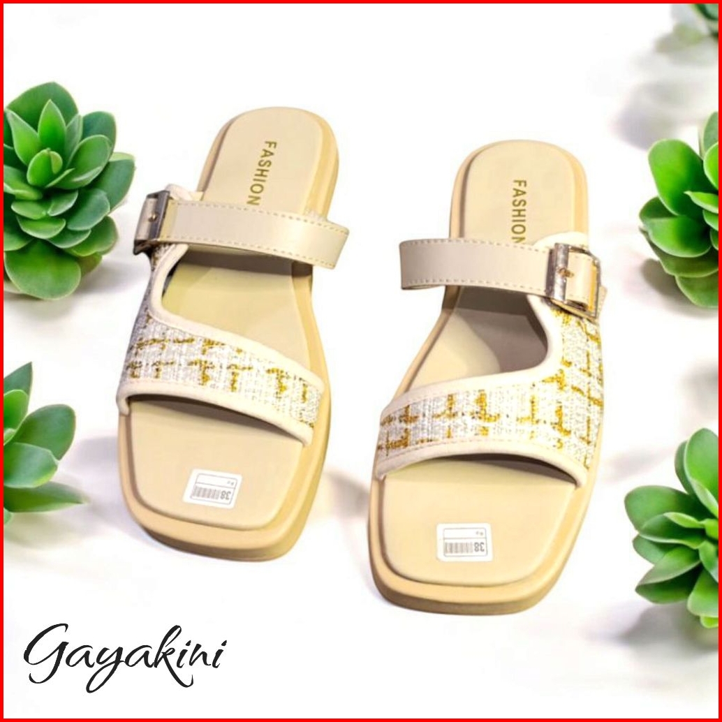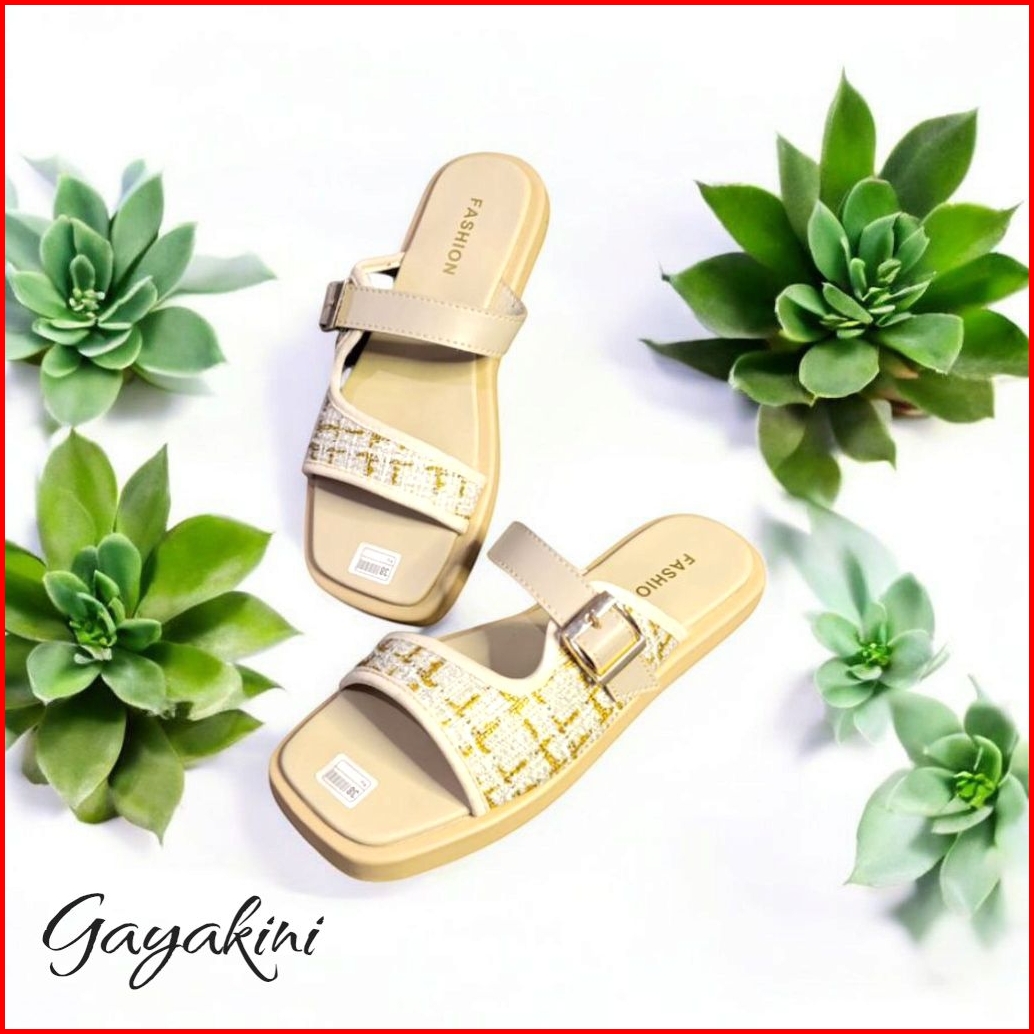 Gayakin Sandal Slip On Flat Teplek Wanita Trendy Fashion Bahan Kanvas Sol Karet Anti Licin