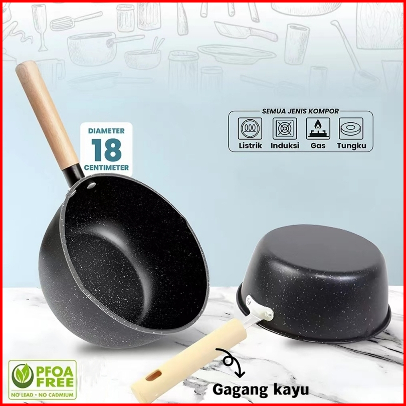 Panci Susu Hitam 18cm Panci Indomie Rebus Tumis Enamel Hitam Anti Lengket