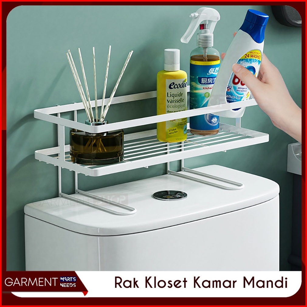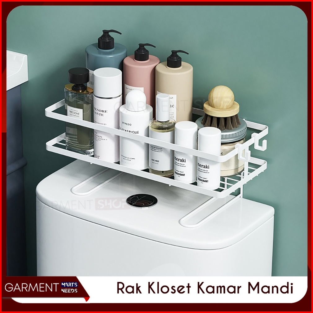 Rak Kamar Mandi Tempat Penyimpanan Sabun Shampoo Tempel Dinding Gantung Besi Tebal Anti Karat Estetik Atas Kloset