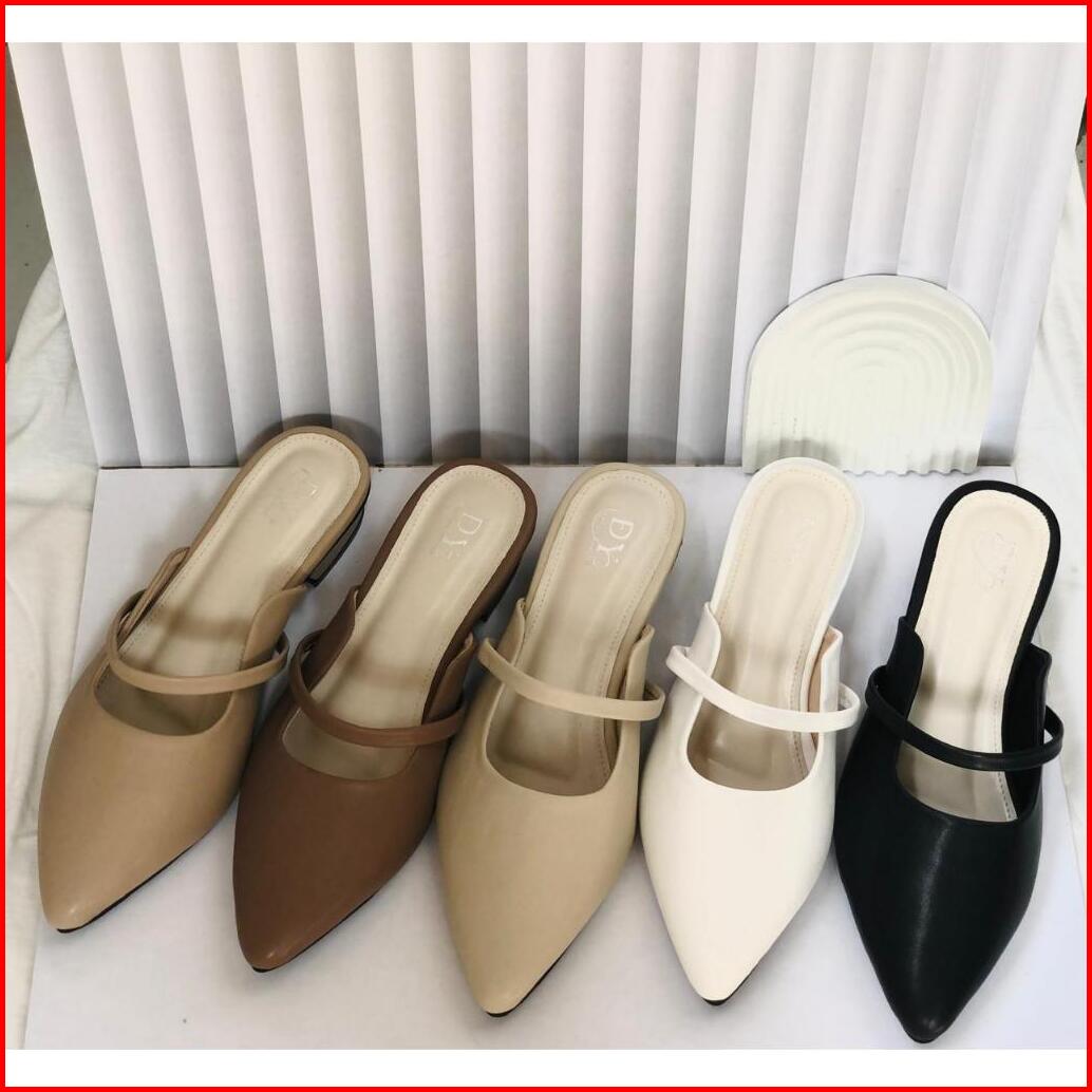 Dn02 Sepatu Sendal Mules Bapau Wanita Kekinian Hak 3cm Premium Terbaru