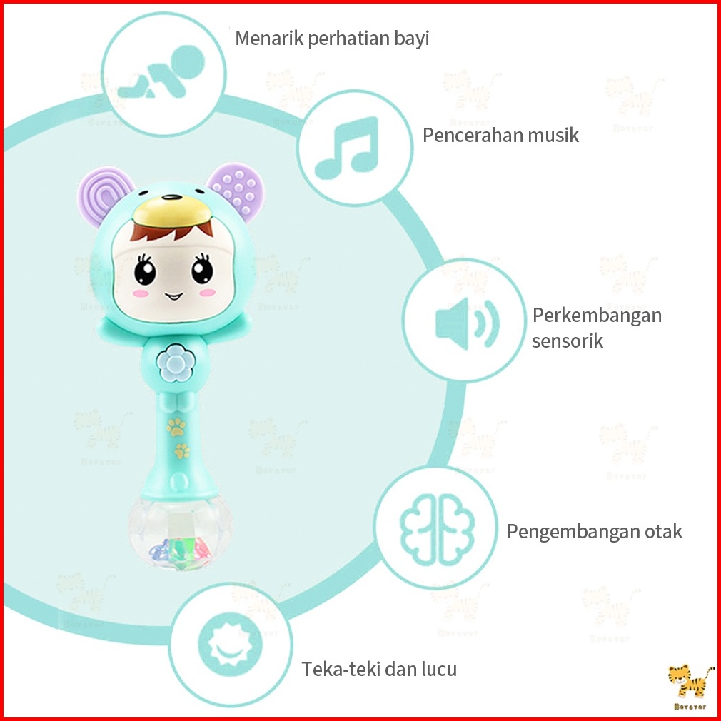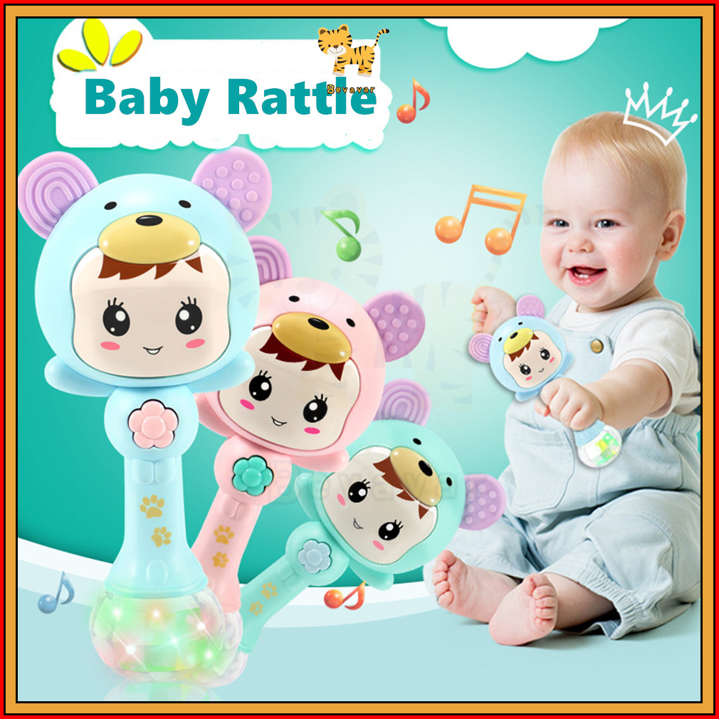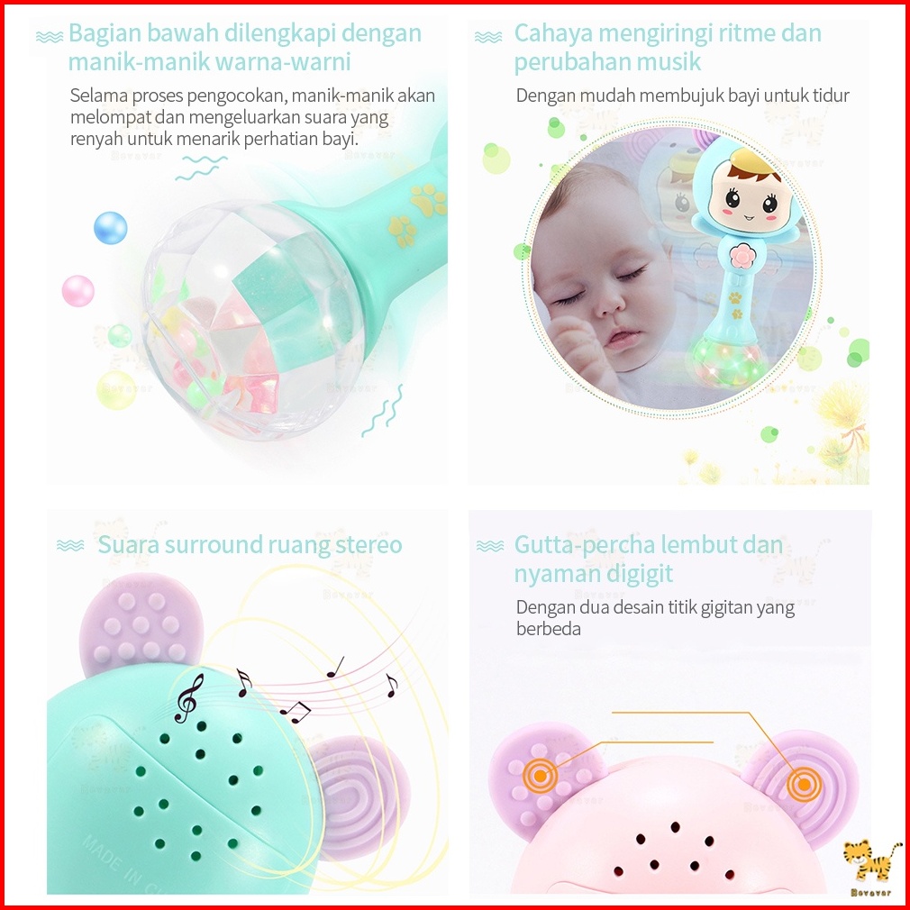 Mainan Bayi Tongkat Rattle Teether Musik Lampu Kelap Kelip