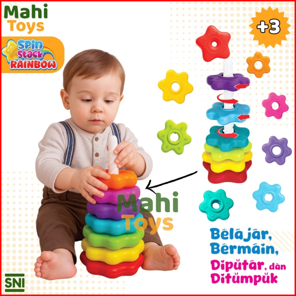 Mahitoys Mainan Edukasi Bayi Donat Putar Bentuk Bunga Warna Warni Mainan Susun Cincin Edukatif Untuk Balita