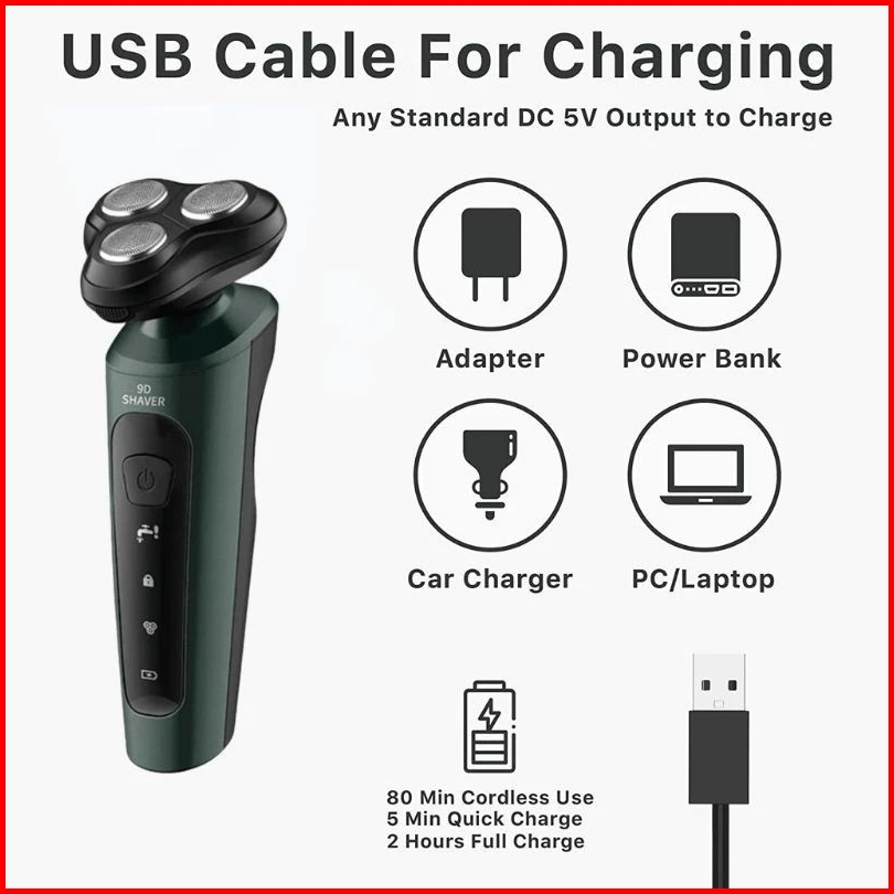 Alat Cukur Jenggot Kumis Shaver 9d Elektrik Shaver 9d Alat Cukur 3 Mata Pisau