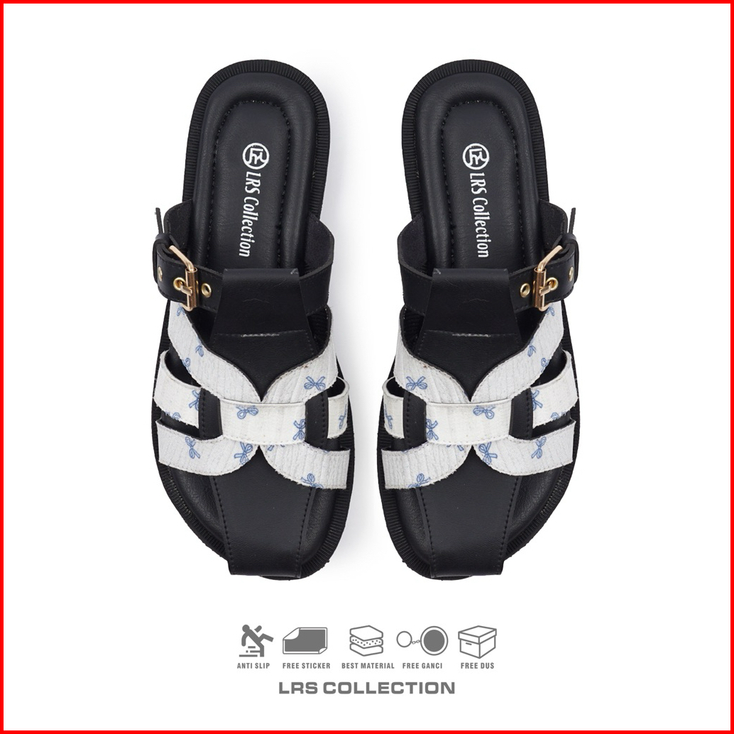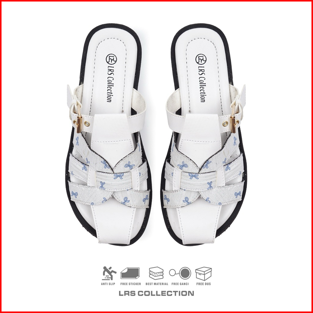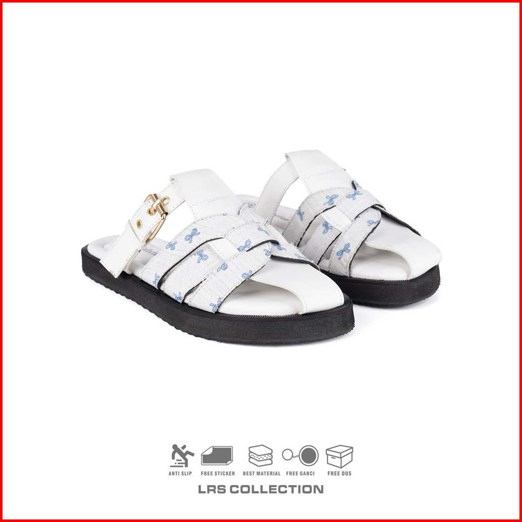 Lrs Collection - Sandal Wanita Kanvas Pita Patricia White Black Style Korea Sandal Wanita Flat