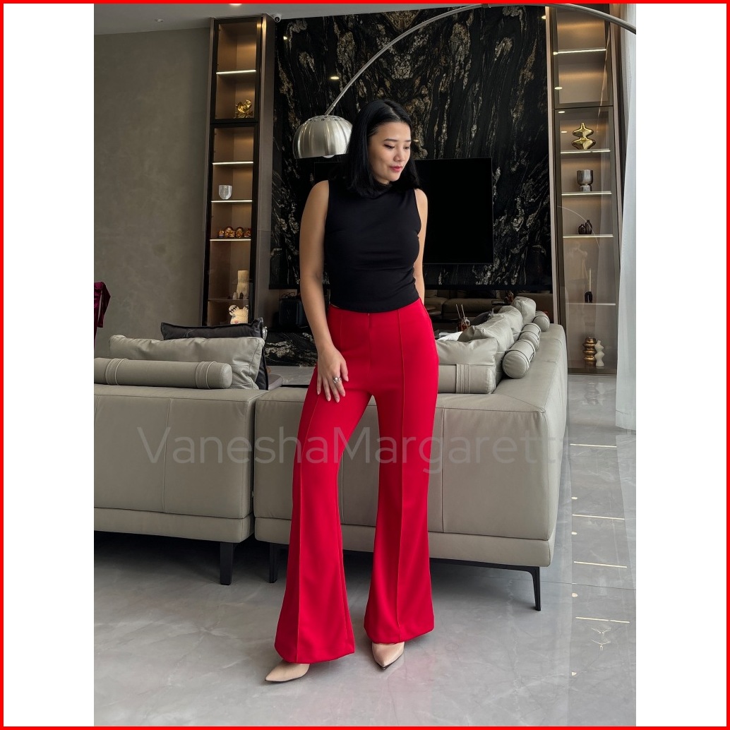 Vm - 525 - Hw Pants Scuba Celana Celana Fashion Wanita Cutbray Highwaist