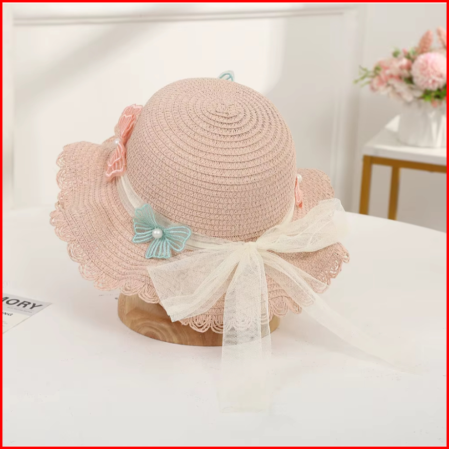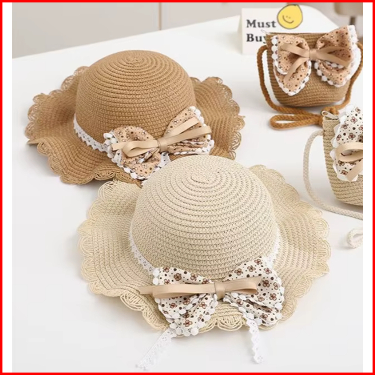 Topi Jerami Fashion Anak Perempuan Korean Style Tepi Lebar Topi Pantai Model Cantik Straw Hat Wide Fashion Hat Brim