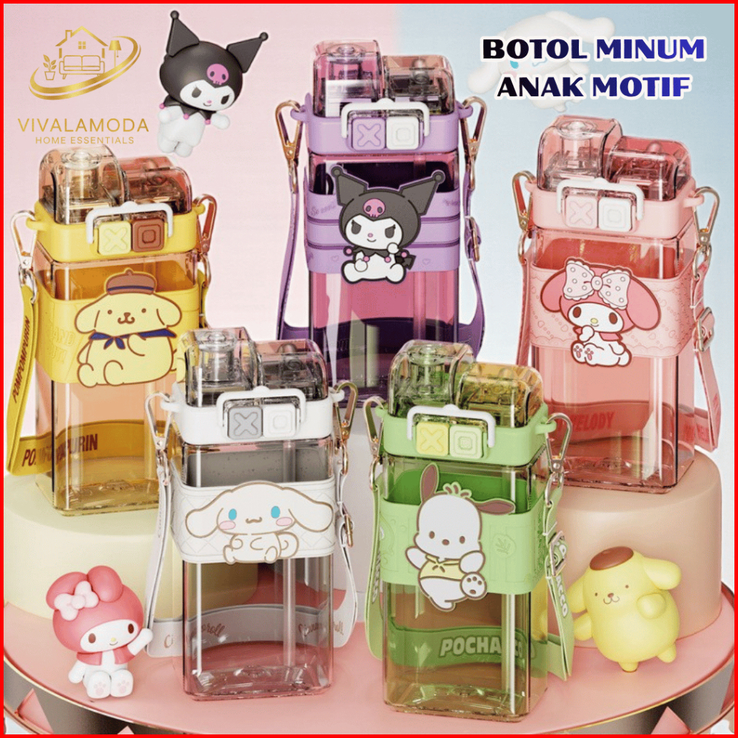 Botol Minum Anak 2in1 580ml Karakter Sanrio Tumbler Sedotan Bpa Free Bonus Stiker 3d Lucu