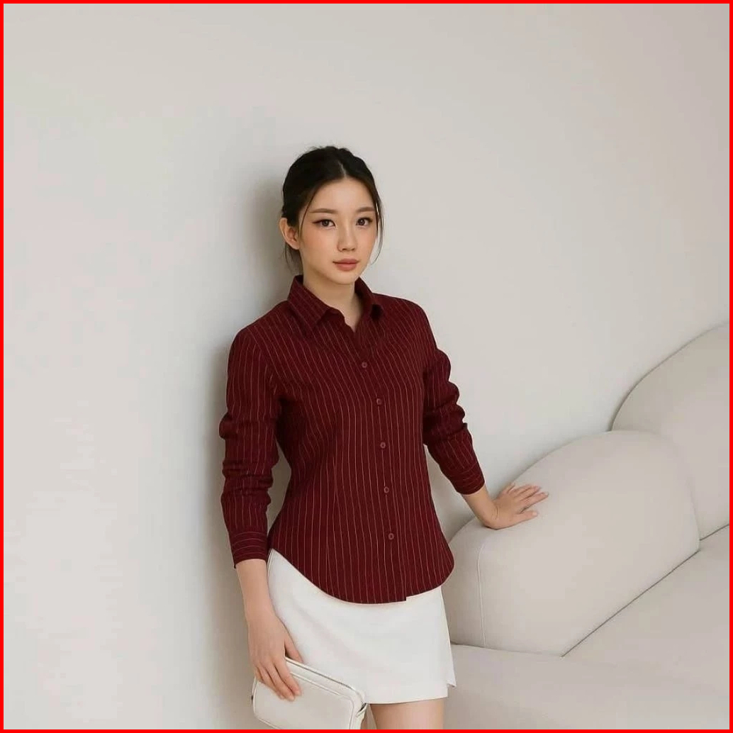 Kemeja Luna Stripe Salur Fit Body Wanita Bahan Semiwool