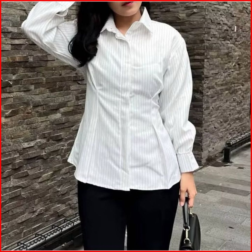 Kemeja Fitted Wanita Stripe Salur Katun Poly