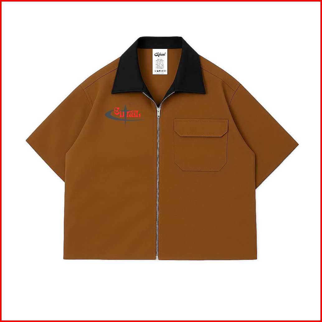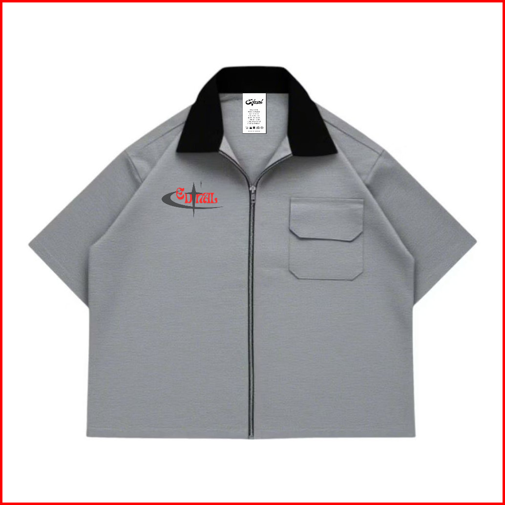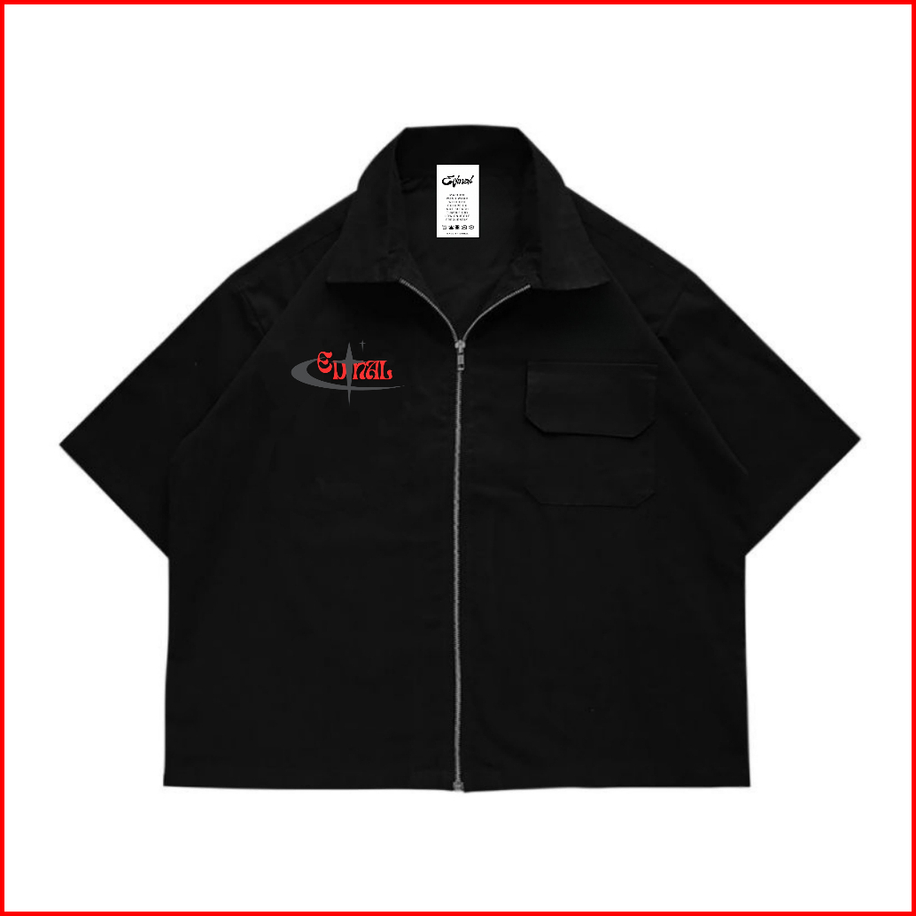 Edinal Workshirt Zipper Slb Kemeja Boxy Pria Wanita