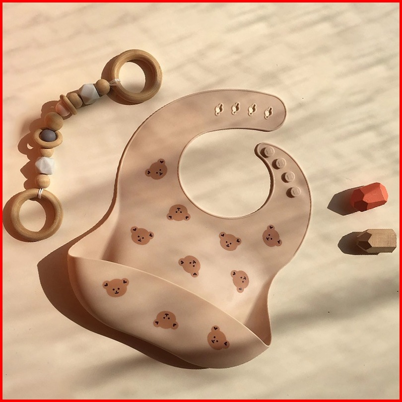 Beruang Bib Portabel Tahan Air Bear Silicon Baby Bib Celemek Mpasi Bayi Bear