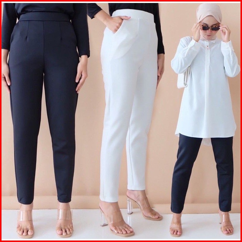 Celana Slim Korean Basic Pants Scuba Celana Harem Minsol Kain Scuba