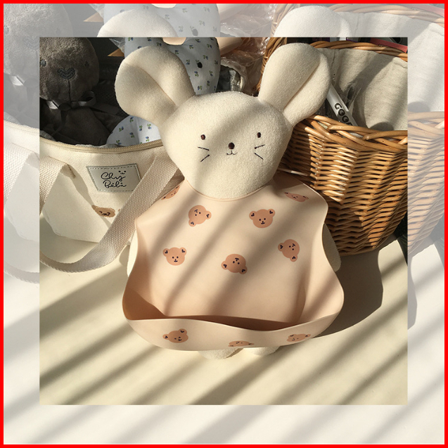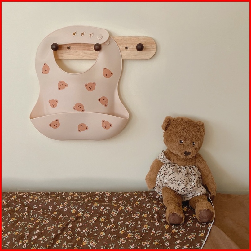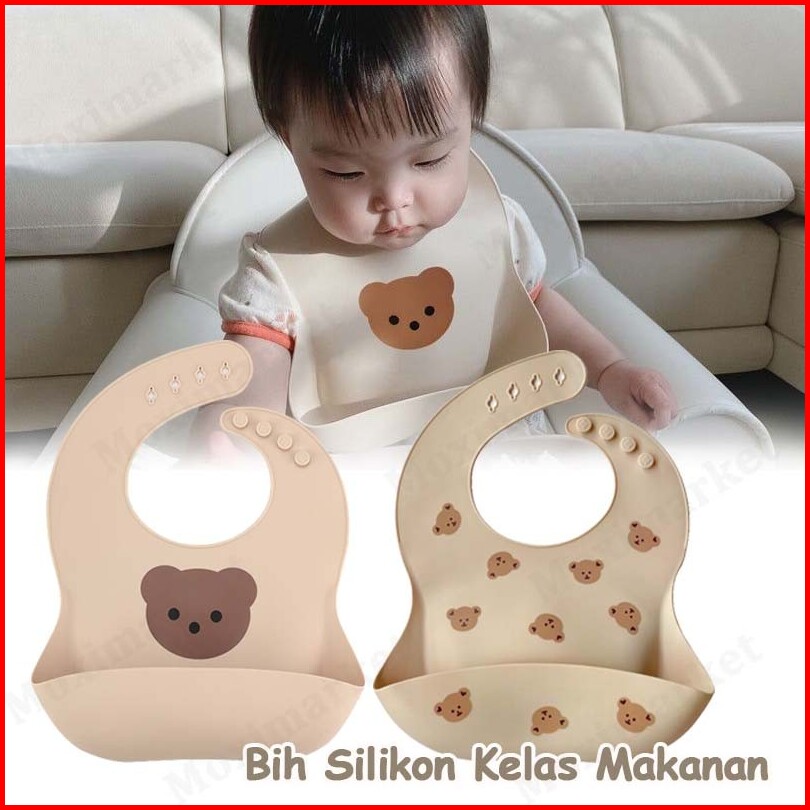 Celemek Mpasi Bayi Silikon Bear Korea Beruang Bib Portabel Tahan Air Bear Silicon Baby Bib Celemek Mpasi Bayi Bear Littl