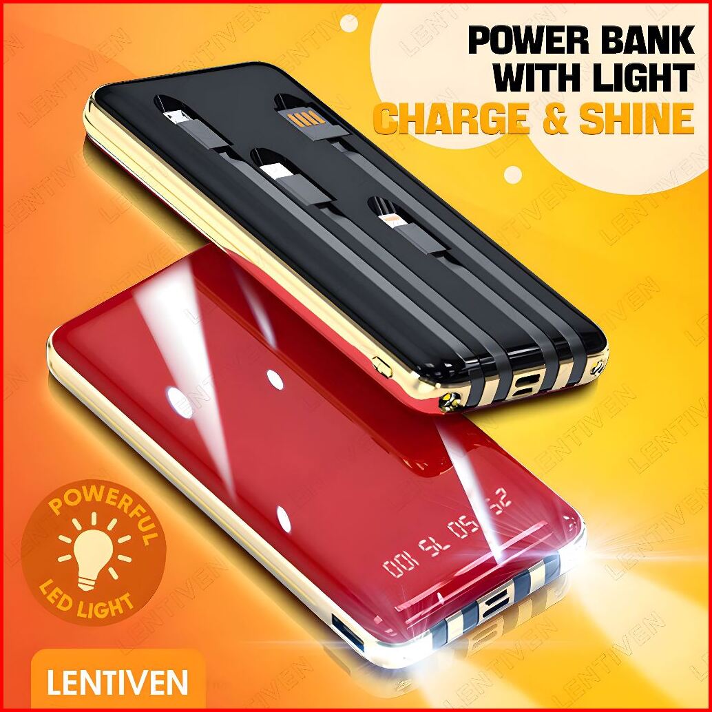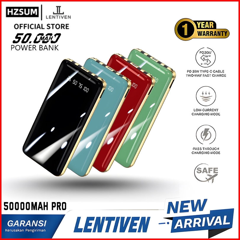 Hzsum Lentiven Powerbank 50000mah Mini Fast Charging 4 Kabel Data Tipe Pro Garansi 1 Tahun