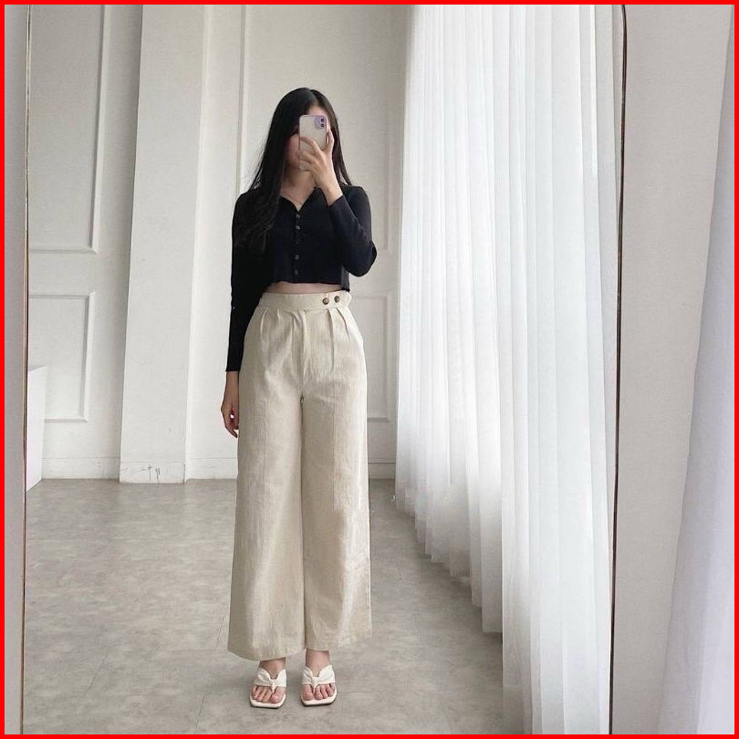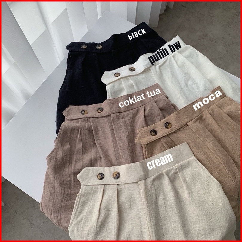 Celana Kulot Linen Highwaist Katun Premium Double Button Kancing Depan Aktif Size M L Xl Xxl Dari Bb 40-75kg Celana Kulo