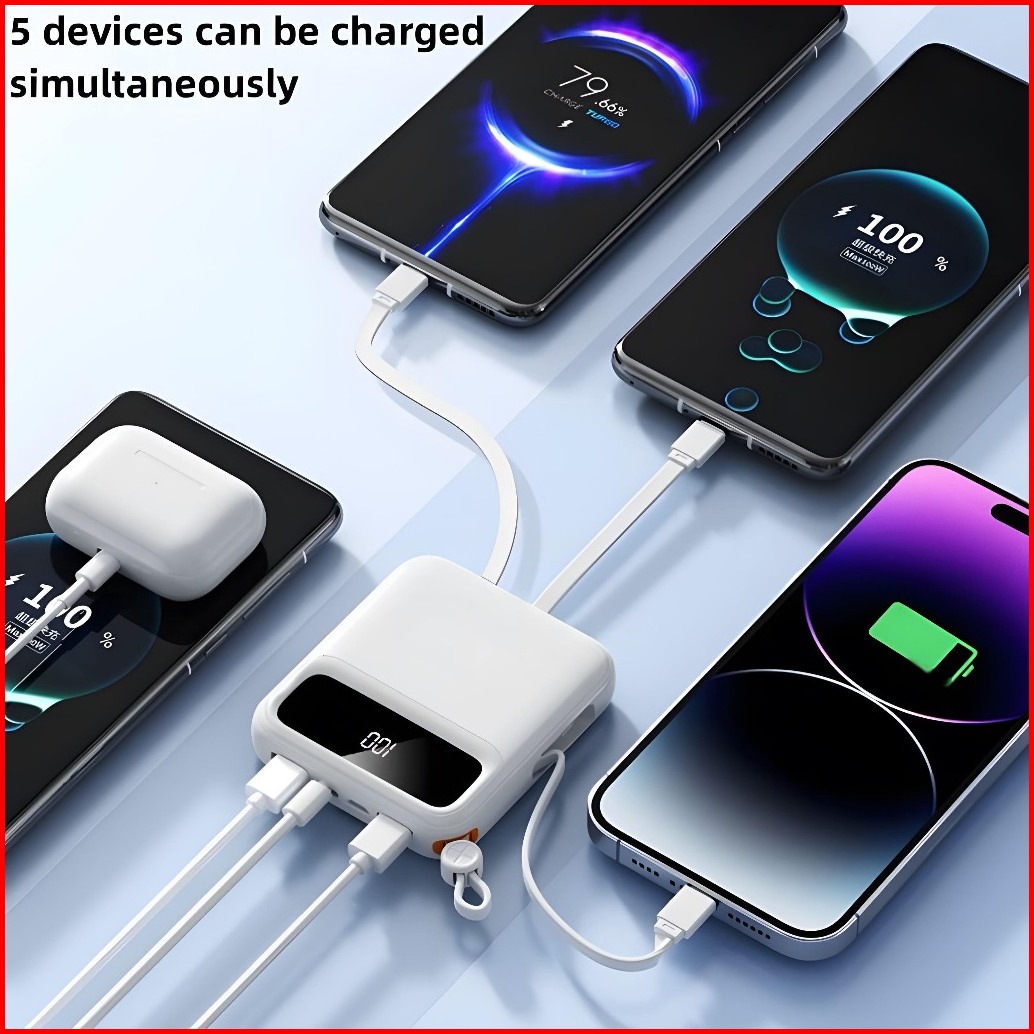 Lentiven 20000mah Powerbank Mini Fast Charging 4 Kabel Lightning Type C For Iphone Android Bh263