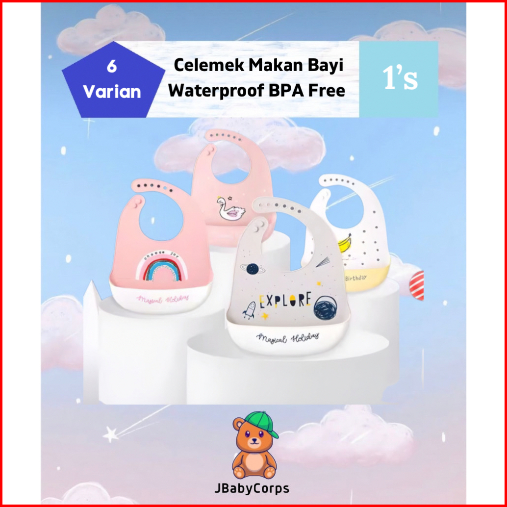 Premium Baby Bibs Silikon Bpa Free Waterproof Mpasi Celemek Makan Bayi Feeding Silicone Slabber Bib