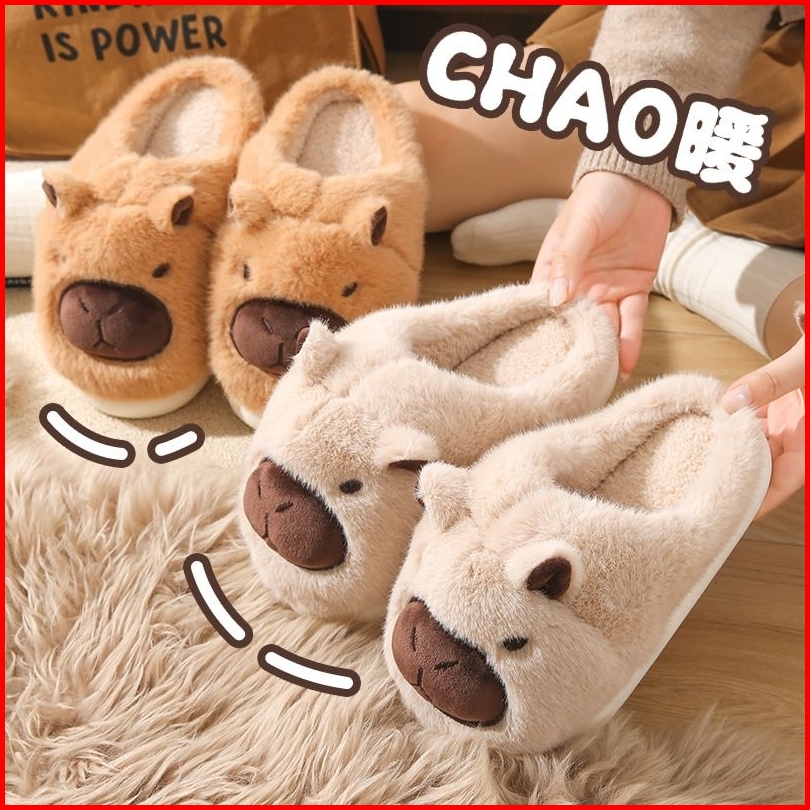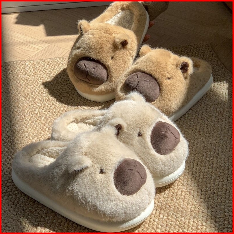 Sendal Slipper Sandal Rumah Bulu Karet Boneka Capybara Anti Slip Kualitas Premium Bulu Halus Padat