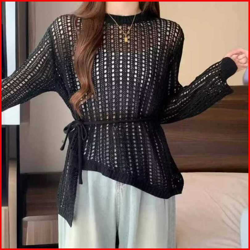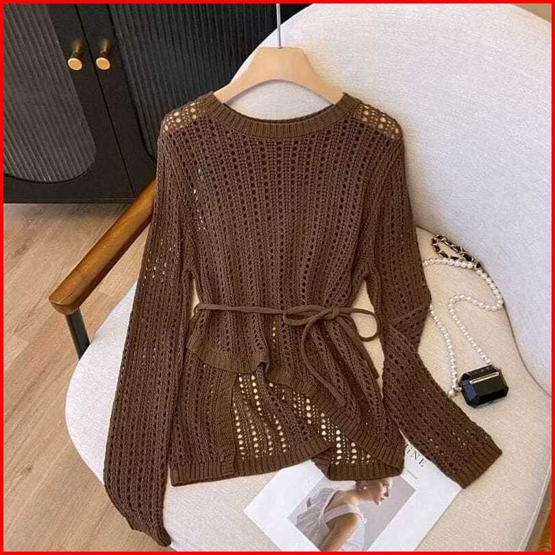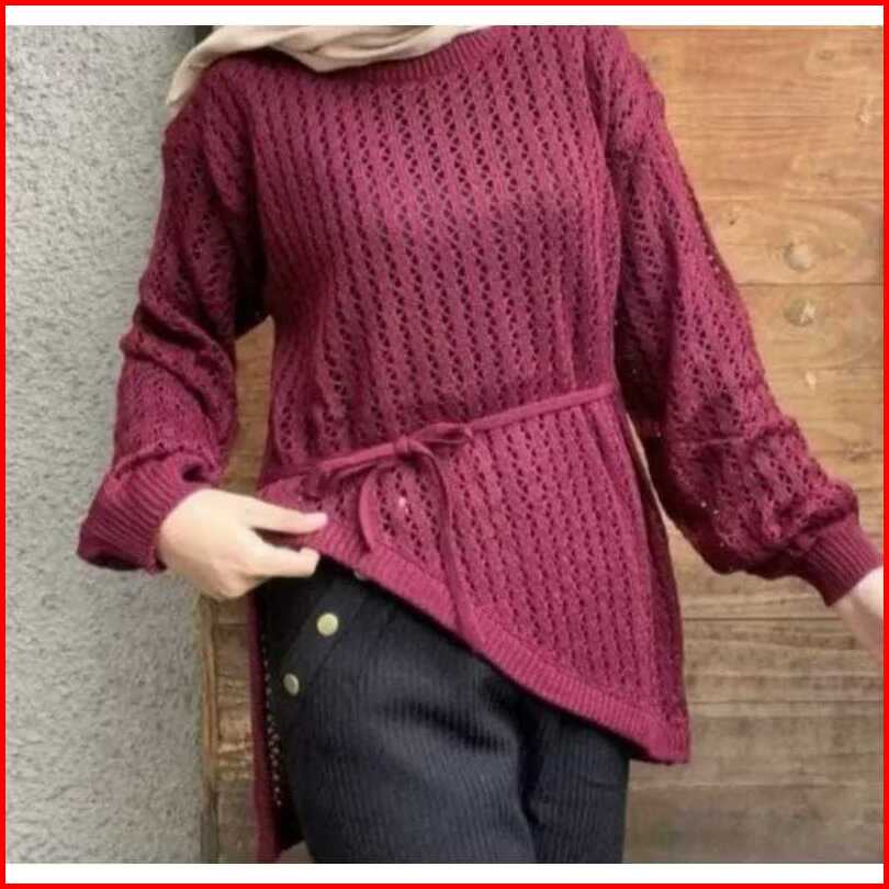 Yuruma Sweater Rajut Jaring Tali Knitwear Premium Wanita Atasan Wanita