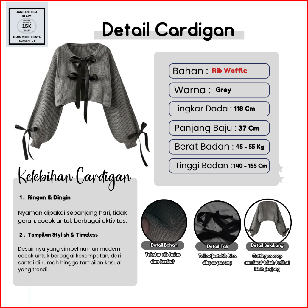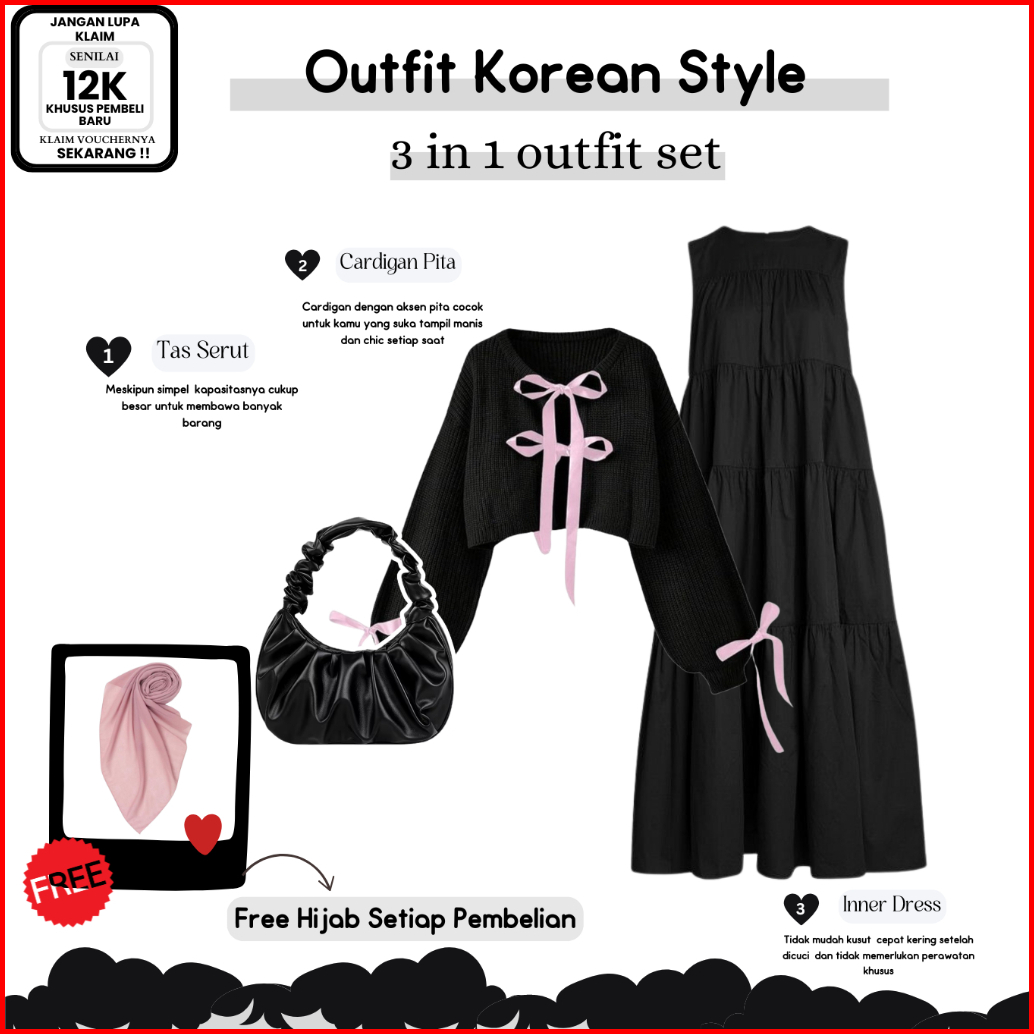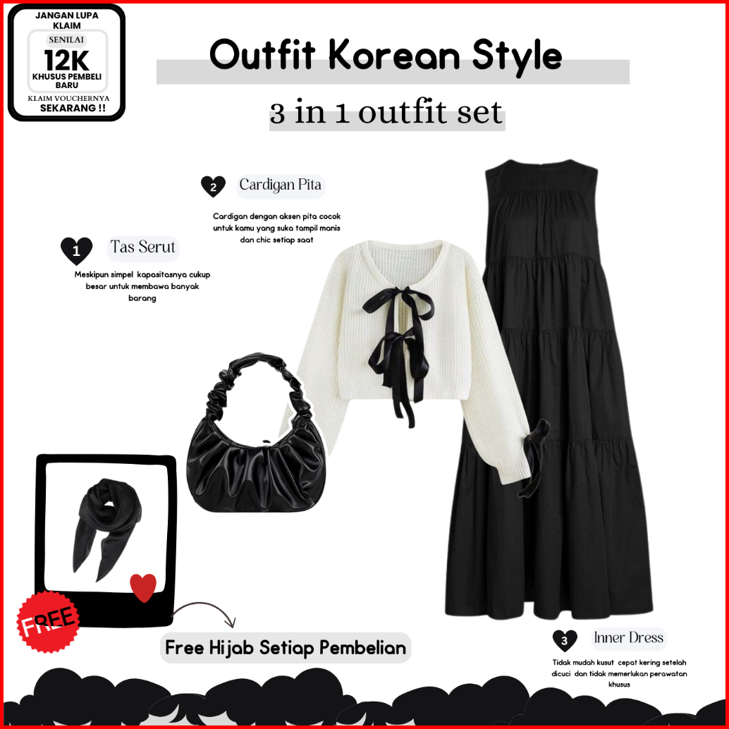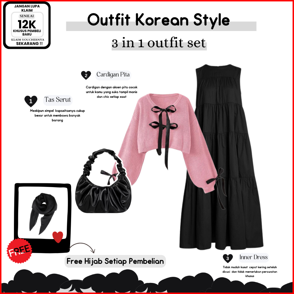 Dm40 - Oneset Cardigan Korean Style Cardigan Pita Tas Inner Dress Ruffle Outfit Casual Elegant
