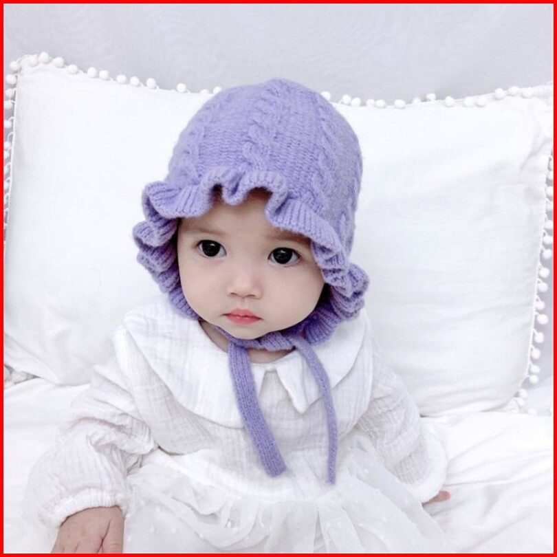 Topi Kupluk Rajut Casual Handmade Aksen Ruffle Untuk Bayi Perempuan Usia 0-3tahun.
