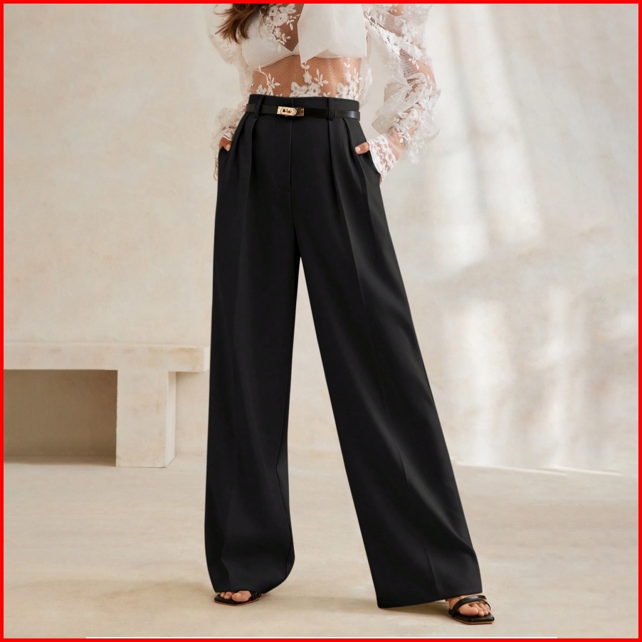 Teritory Straight Pants High Waisted Culotte Celana Panjang Kulot Wanita Casual Formal