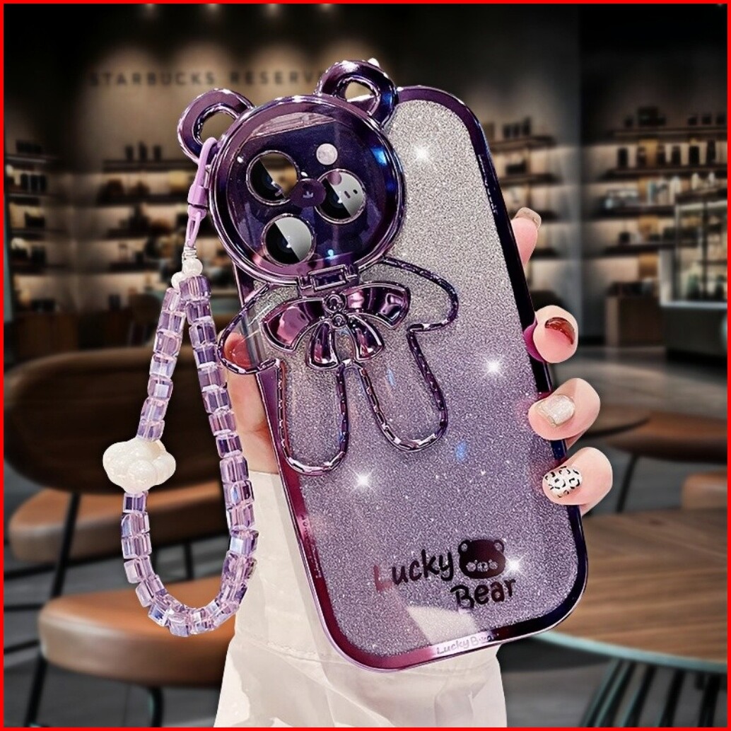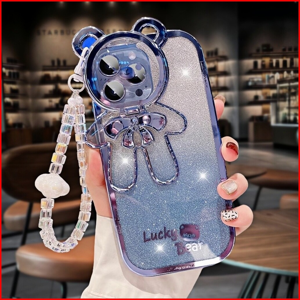 Glitter Bear Phone Case For Iphone 14 15 Promax 13 12 11 Pro Max 7 8 Plus Xr Xs Max Colored Bracelet Bear Ears Shockproo
