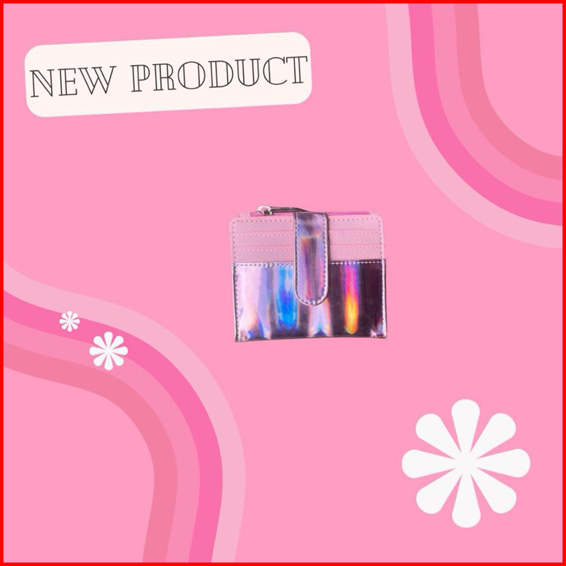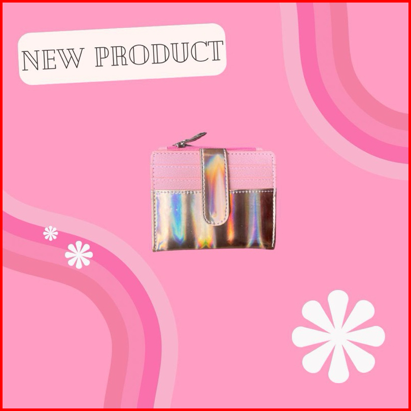 Dompet Lipat Minimalis Hologram Glitter Glossy Free Sticker