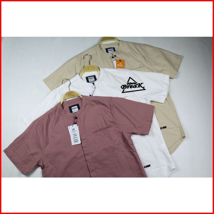 Kemeja Koko Kancing Full Kerah Shanghai Muslim Pria Terbaru 2023 Premium Kemeja Sage