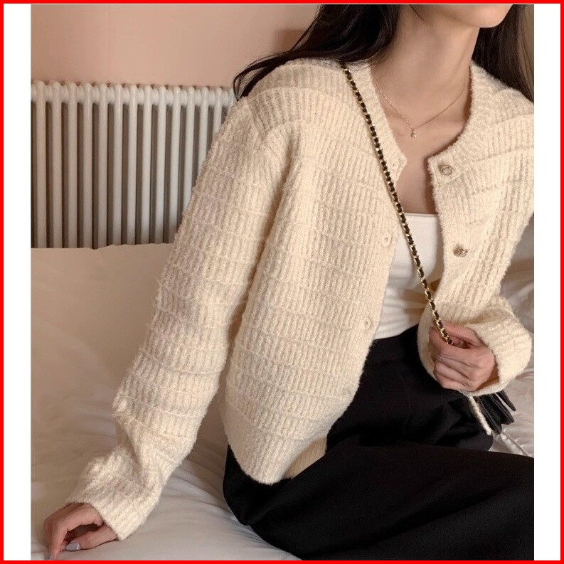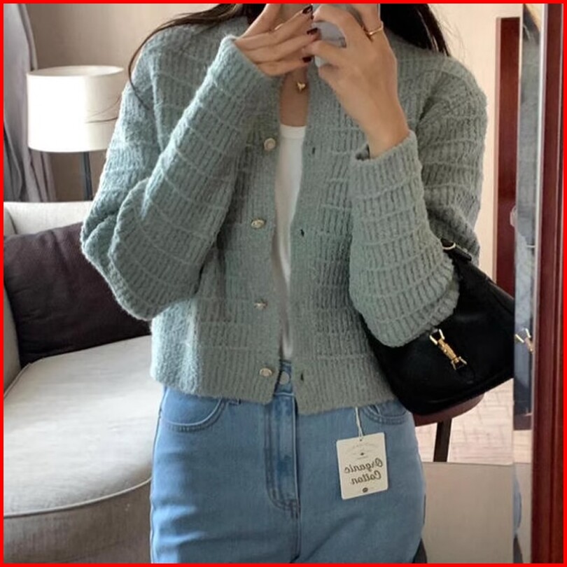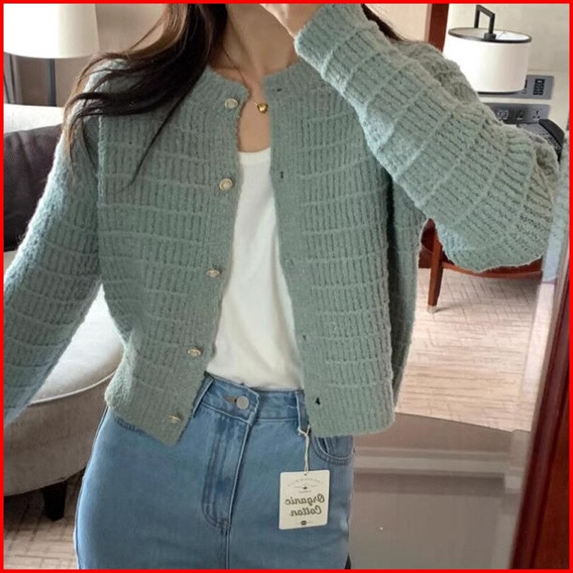 Quirino - Cardigan Rajutan Pendek Wanita Kancing Leher Bulat Ala Korea Sweater Cardigan Rajutan Pendek Yang Lucu