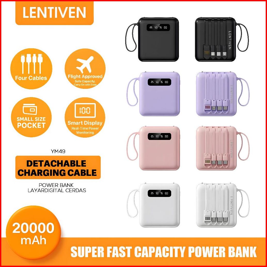 Wankei Lentiven Powerbank 20000mah Mini Fast Charging With Kabel Micro Usb Lightning Type C Led Display Type Pro
