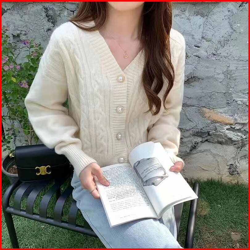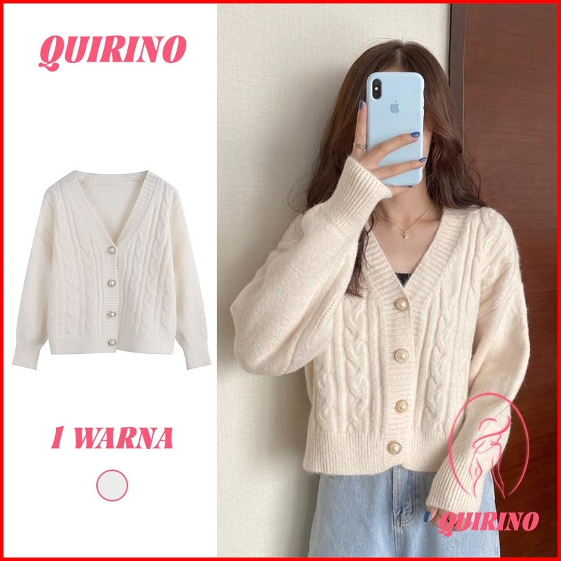Quirino - Cardigan Sweter Rajutan Pelangsing Warna Solid Kerah V Modis Gaya Korea