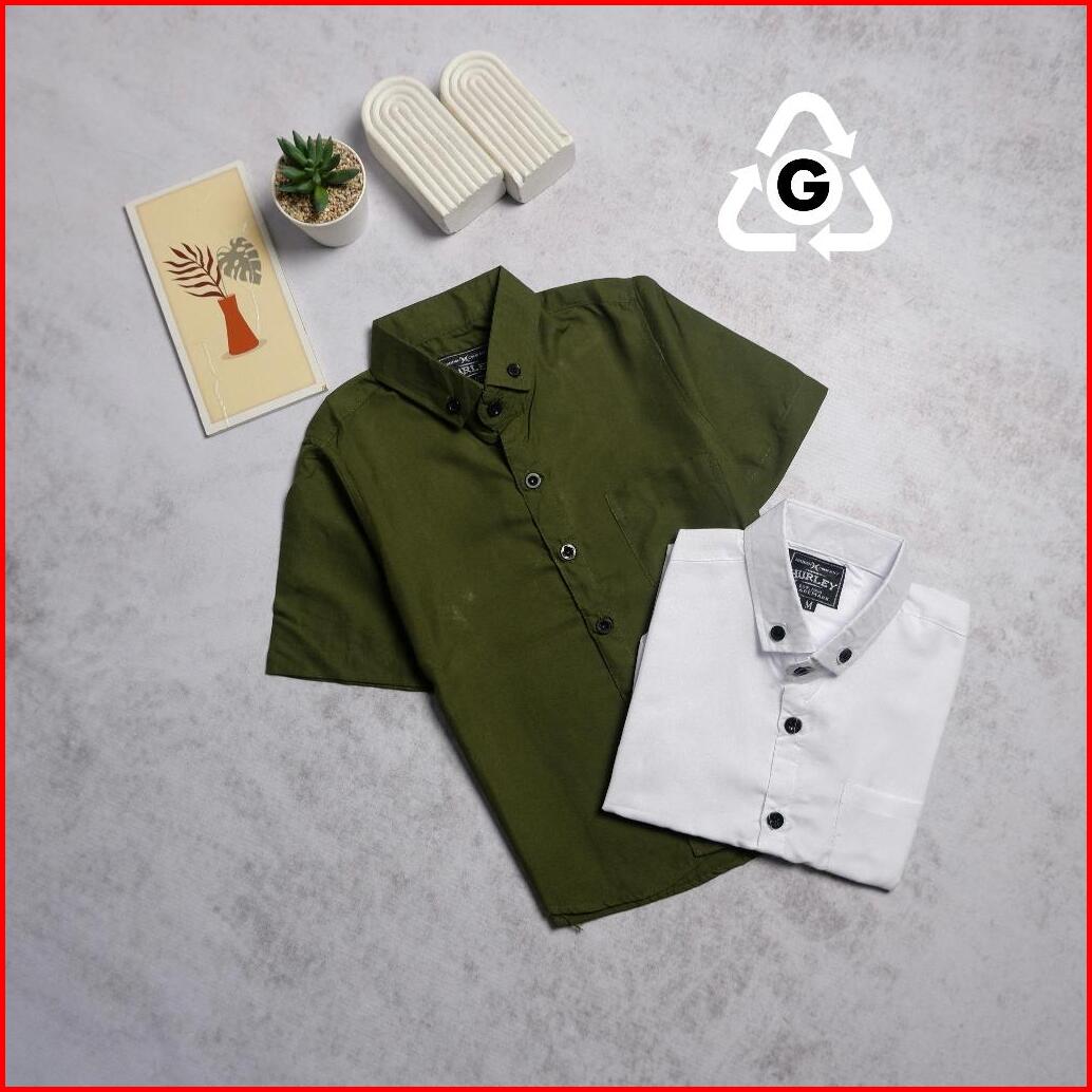 Beli 1 Dapat 2 Kemeja Anak Polos Lengan Pendek Pakaian Anak Serba Kids Kemeja Anak Laki-laki Putih Hitam