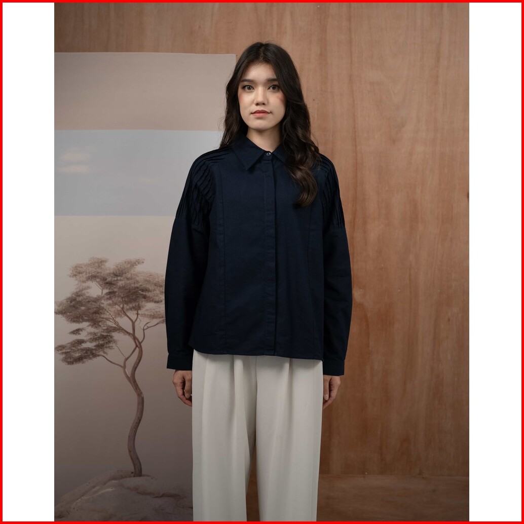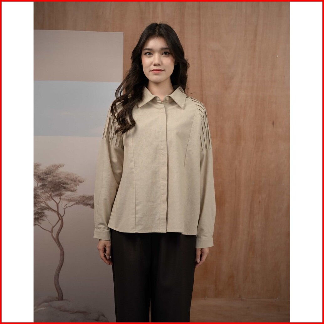 Mayoutfit Virey Shirt Kemeja Raglan Linen Basic Wanita Aksen Opnaisel