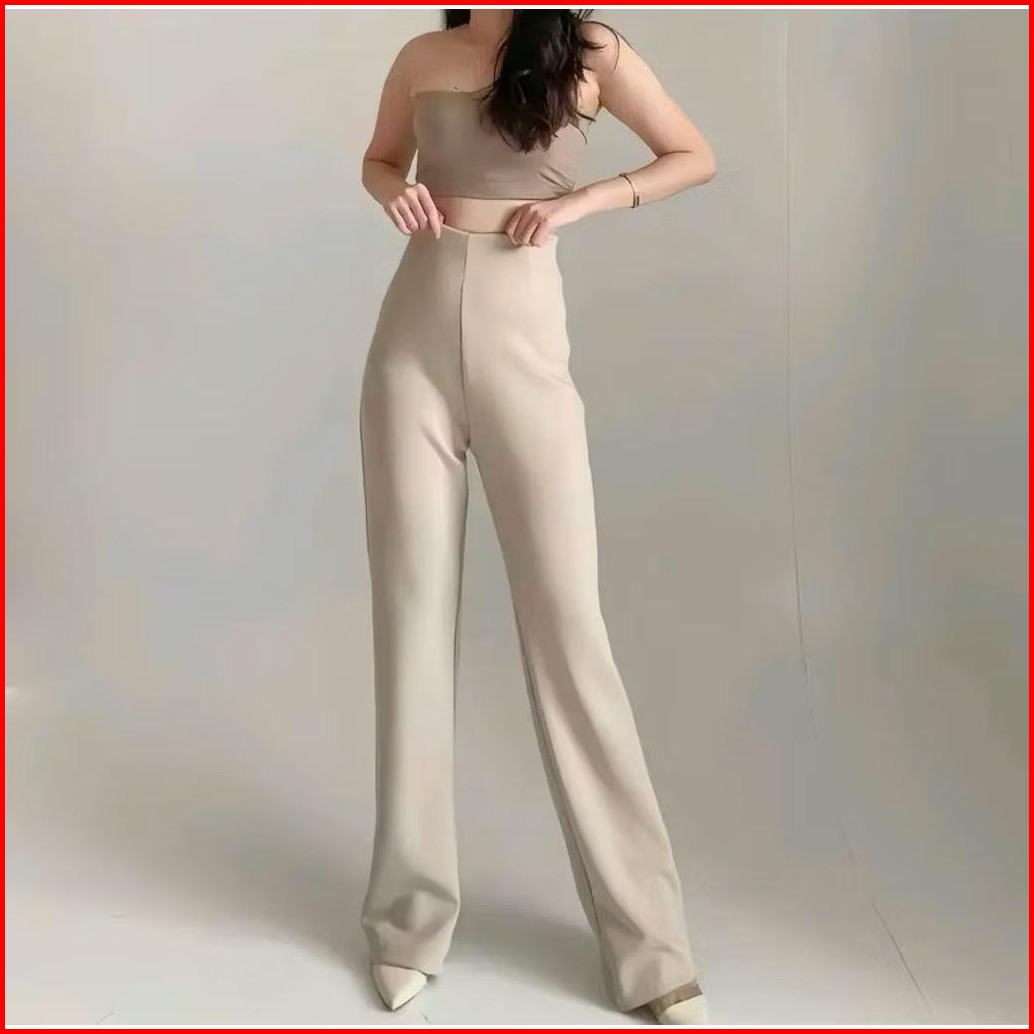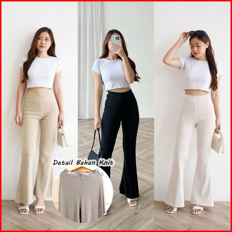 Flared Pants Rib Knit Kulot Cutbray - Celana Kulot Wanita Bahan Knit Anti Kusut Celana Panjang Wanita