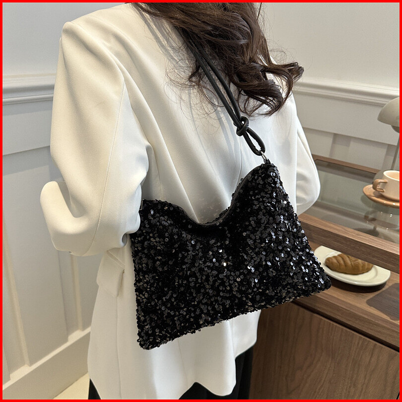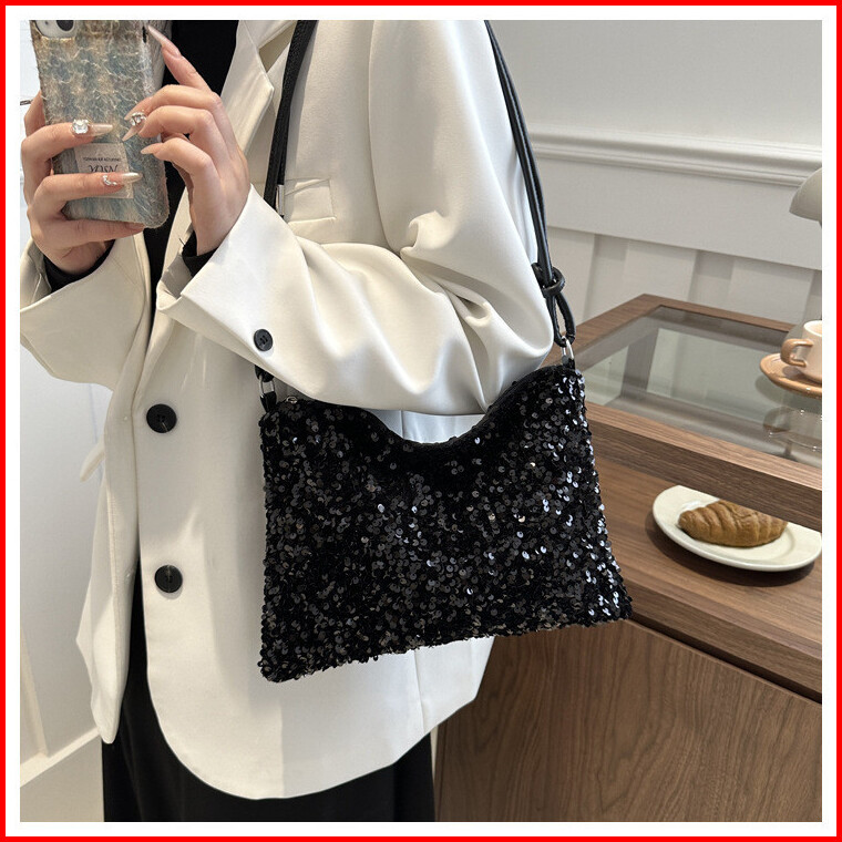 Tas Selempang Bahu Wanita Berkilau Dengan Desain Baru Ins Yang Modis Dengan Kapasitas Besar Warna Putih Yang Cocok Denga
