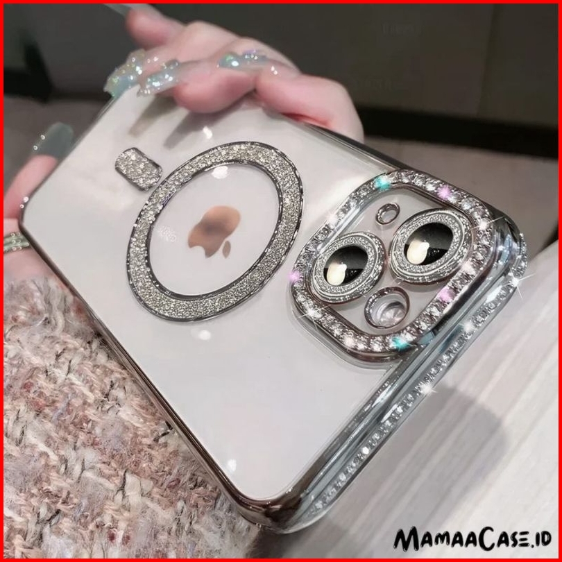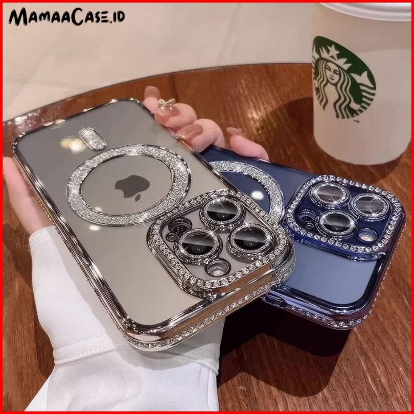 Rhinestones With Lens Protector Magsafe Case For Iphone 16 16 15 15 14 14 13 12 11 Pro Max Plus Plating Glitter Soft Cas