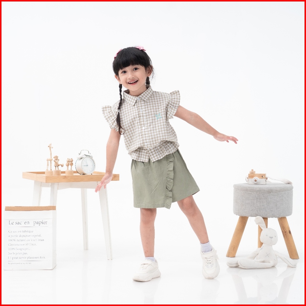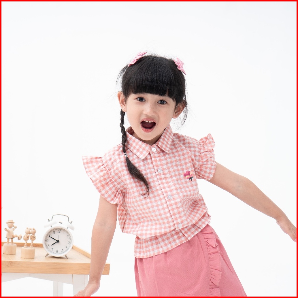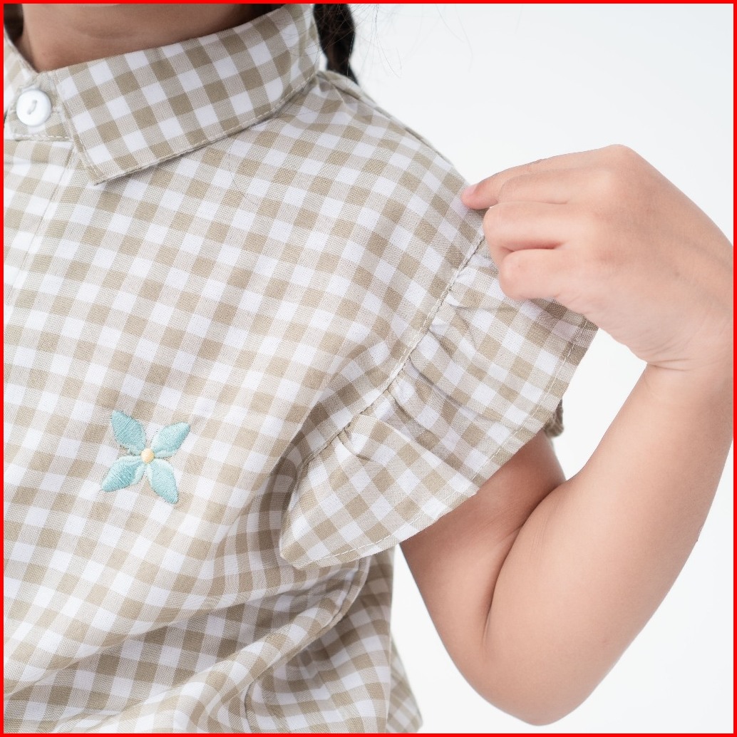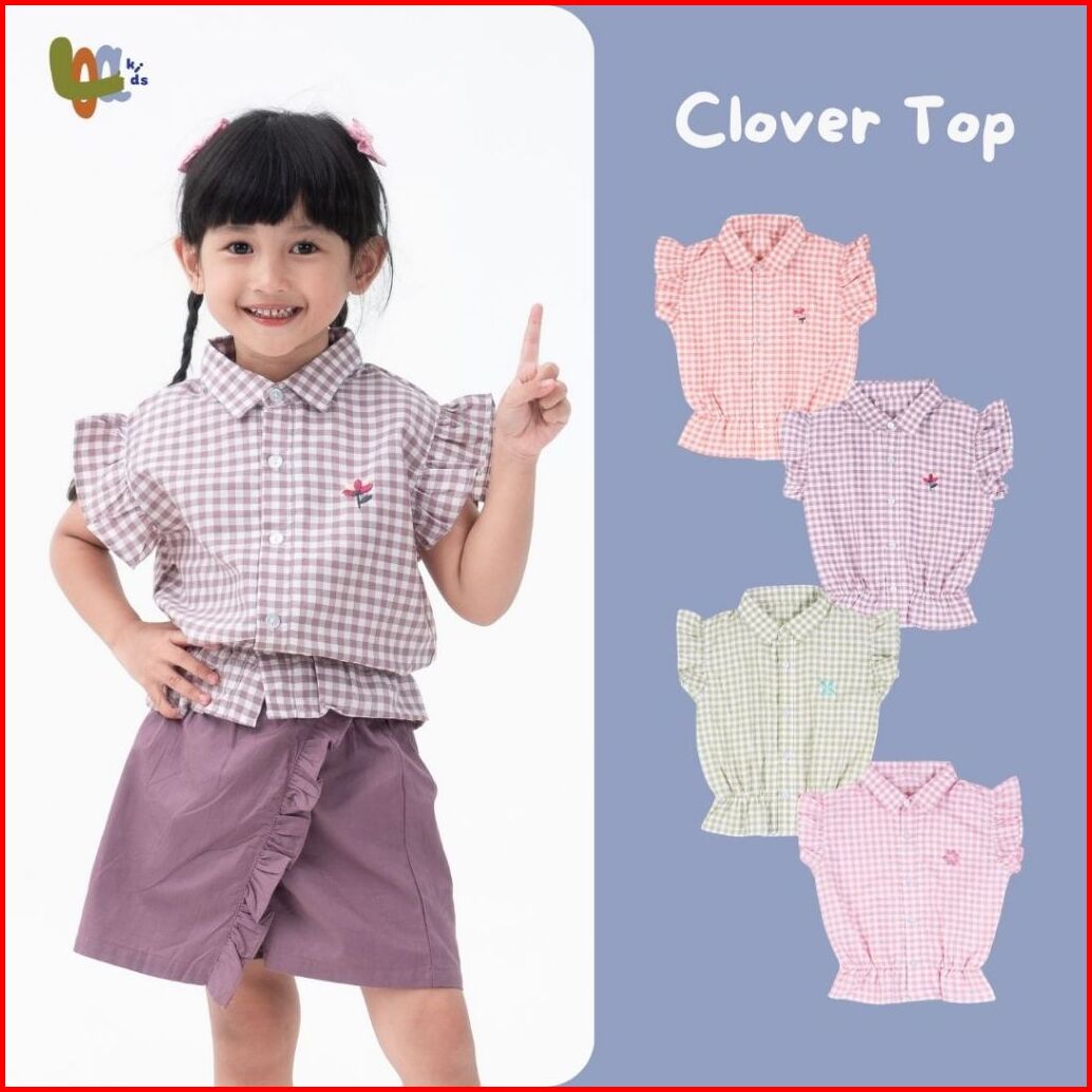 Loa Studios Kids - Clover Top Shirt - Kemeja Kasual Anak Kotak - Kotak Gingham - Kemeja Santai Anak Perempuan Dengan Bor