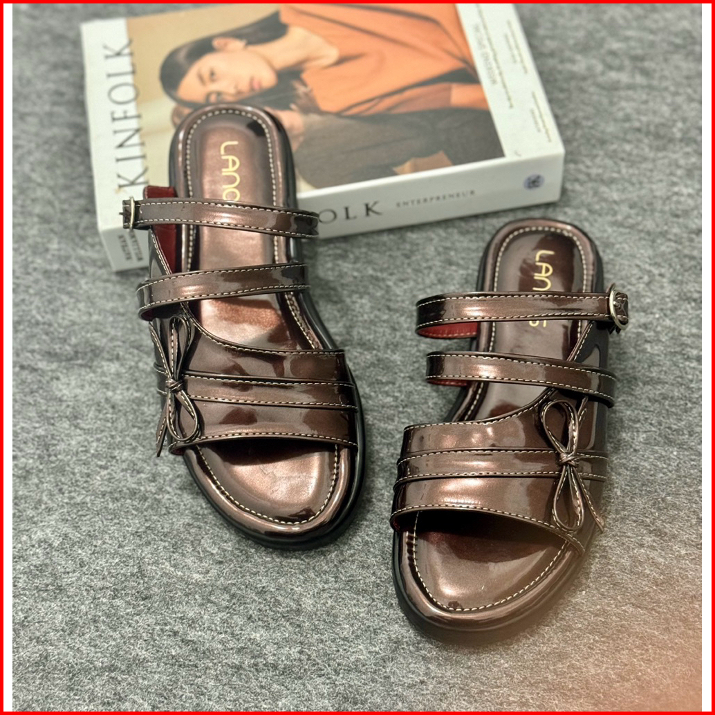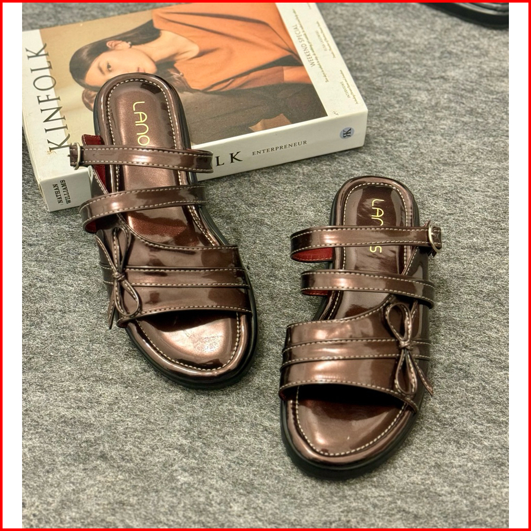 Lanoes Sandal Platform Wanita Kekinian Tali Pita Empuk Terbaru Sandal Slip On Flat Mules Slop Karet