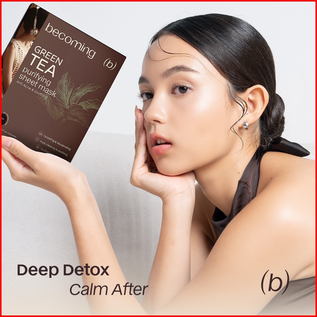 1 Box Becoming Green Tea Purifying Sheet Mask 25ml Masker B5 Anti Acne Soothing Menenangkan Kulit Berjerawat Panthenol M